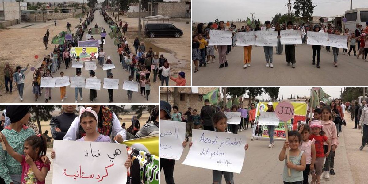 ŞEHBA – Li Şehba ya herêma Efrînê, jin û keçên ciwan li gel kongreya jinan Kongra Star bi dirûşmeya “Jin, Jiyan, Azadî Serbixe Azadî” xwepêşandan kirin. Di çalakiya ku li pêşiya meclîsa Fafînê dest pê kir û heta dibistana Fafînê dewam kir, beşdaran bi qîrîna dirûşmeyan, pankart û dowîzên şermezarkirina destavêtina keç, ciwan û jinên Efrînê ji aliyê rejîma çete ve hatin hilgirtin.