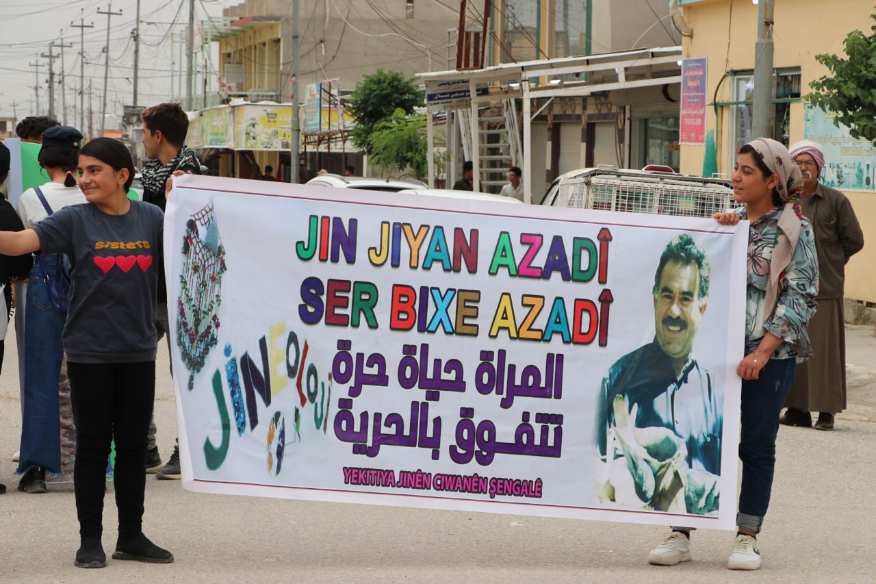 ŞENGAL – Li dijî tecîrda girankirî a liser Rêber APO her wiha êrîşên li ser Şengal û Mexmûrê bi pêşengiya Yeketiya jinên ciwan ên Şengalê meşek hate lidarxstin. Di meşê de hate diyakirin ku li kuderê gel xwe li ser fikrê Rêber APO rêxistin bike dijmin wir dike hedef. Êrîşên dewleta İraqê ên liser Mexmûrê jî li ser wî esasî ne. Di çarçoveya hemleya “Jin Jiyan Azadî Serbixe Azadî” ku ji aliyê Yeketiya jinên Ciwan ên Şengalê ve hatiya despêkirin, li nehiya Sinûnê a Şengalê bi pêşengiya yeketiya jinên Ciwan ji bo azadiya Rêber APO yê û piştgiriya berxwedana Mexmûrê meşek hate lidarxstin.