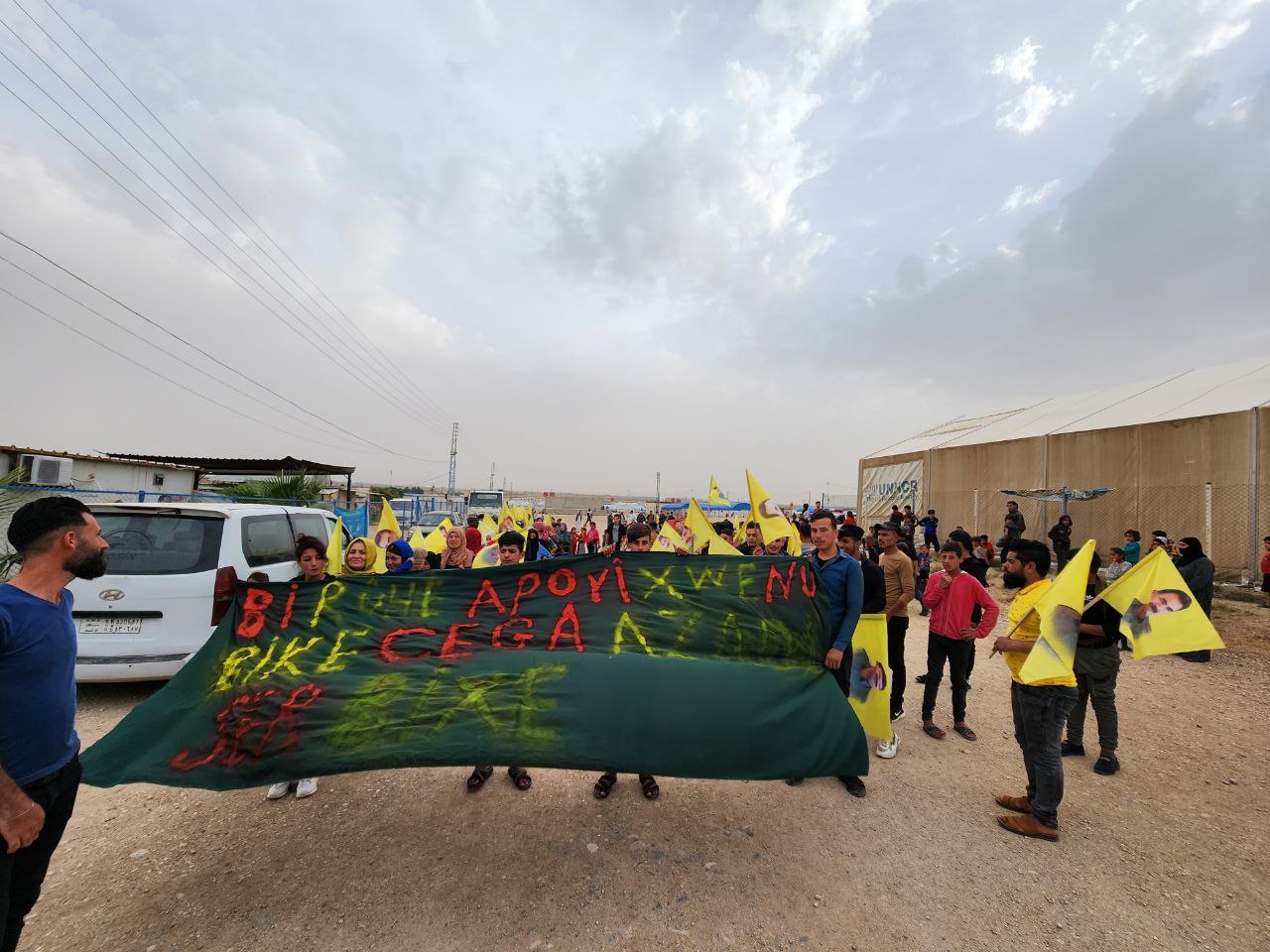 Ji bo şermezar kirina êrîşa li ser Mexmurê ciwanên şoreşger li navçeya Dêrikê meşiyan. Ciwanan diyar kirin ku erîşên li ser kampa Mexmurê ji aliyê dewleta Iraq ê ve pêkhatiye ev siyaset ji hilbijartin ne qutin. Bi hemleya bi rihê apoyî xwe nu bike cenga azadiyê serbixwe emê azadiya fizîkî ya Rêber Apo misoger bikin.