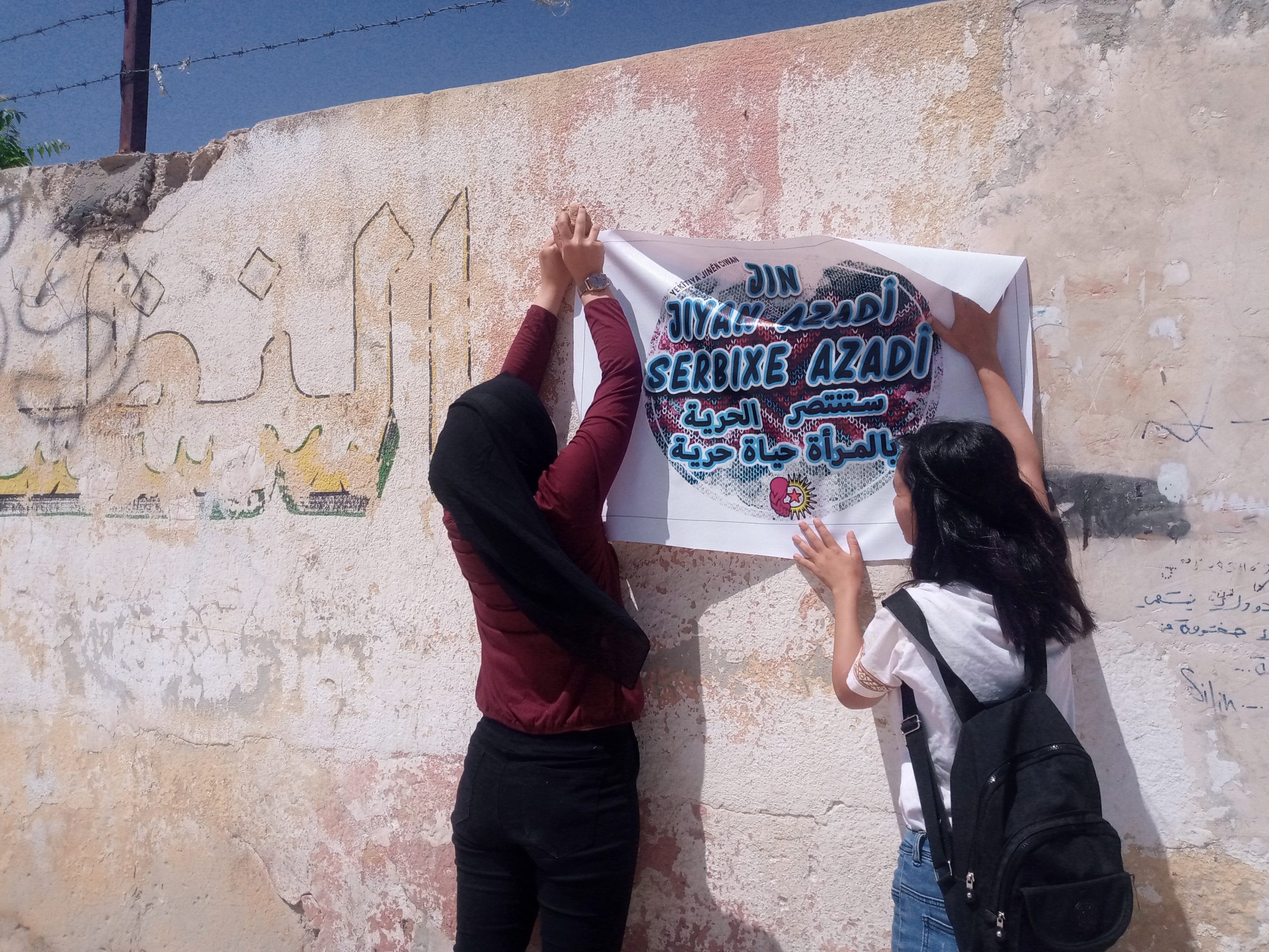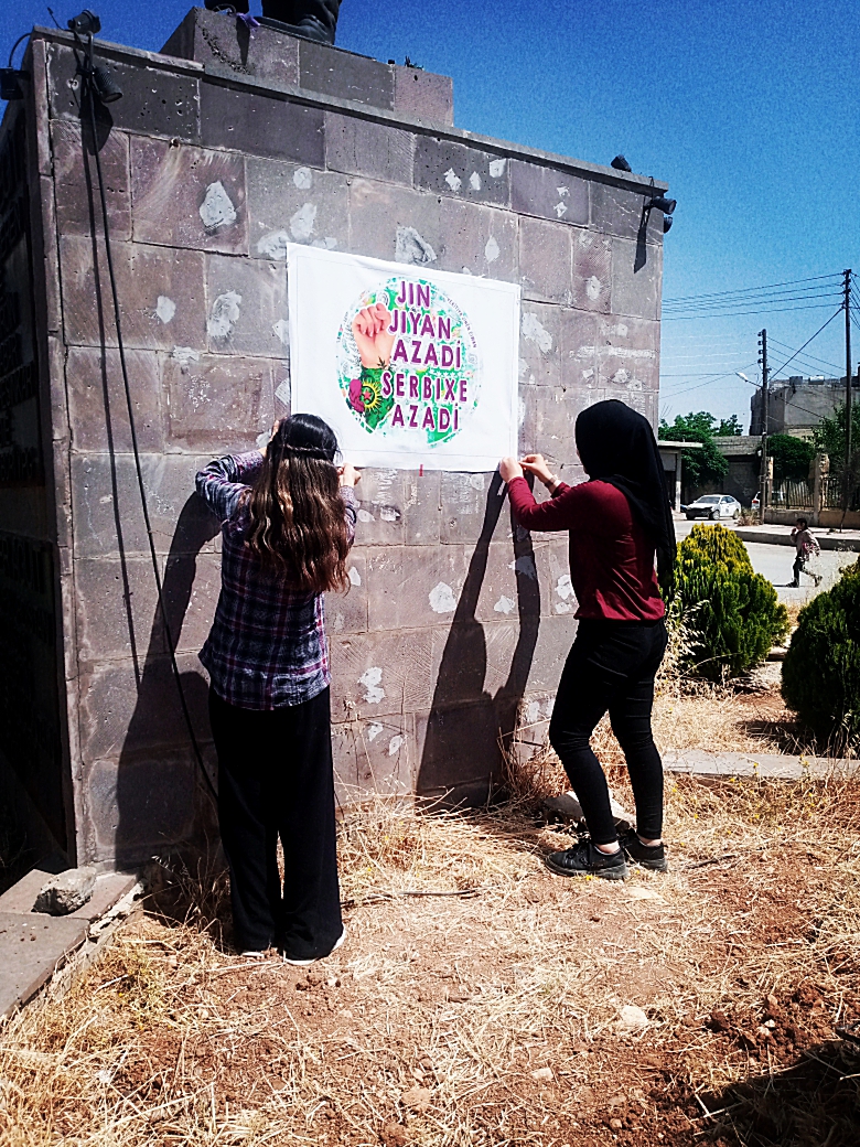KOBANÊ- Jinên ciwan li bajarê Kobanê ji bo kampanya “Jin, jiyan, azadî, serbixwe azadî” afîşên rengîn daliqandin. Kampanya ”Jin Jiyan Azadî Serbixe Azadî” ku ji hêla Komalên jinên ciwan hatibû ragihandin bi çalakiyên rengîn berdewam dike. Her roj jinên ciwan li Rojava ji bo xurtkirina kampanya çalakiyên cur be cur rêxistin dikin. Jinên ciwan ji bo balê bikşînin ser kampanya îro li kolanên Kobanê afîşên rengîn daliqandin. Di heman demê de jinên ciwan ên Kobanê dan xuyakirin, ku ewê di demên pêş ji bo xurtkirina kampanya plansazî û çalakiyên cur be cur berdewam bikin, ji ber ku kampanya bi armanca xurtkirina rola jinên ciwan di civakê de ye.