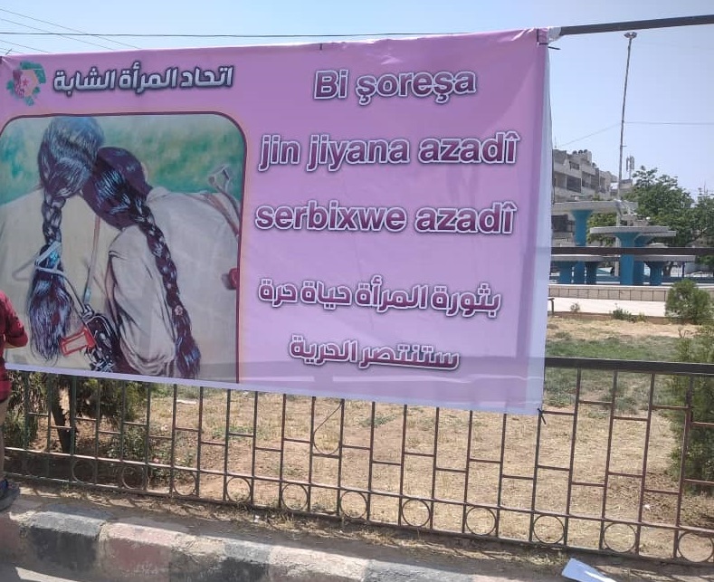 Îro jinên ciwan ên li Qamişlo û bajarê Minbicê biryar dan ku pankarten yên mezin li bajaran daliqînin da ku kampanya di nava civakê de bê naskirin. Çend roj berê Kobanê û Helebce jî ji bo kampanyayê afîşên rengîn li bajarên xwe daliqandin. Bi tevayî, jinên ciwan li Rojava hewl didin bi rêkûpêk ji bo kampanyayê bi rengên geş ên jinên ciwan bixebitin.