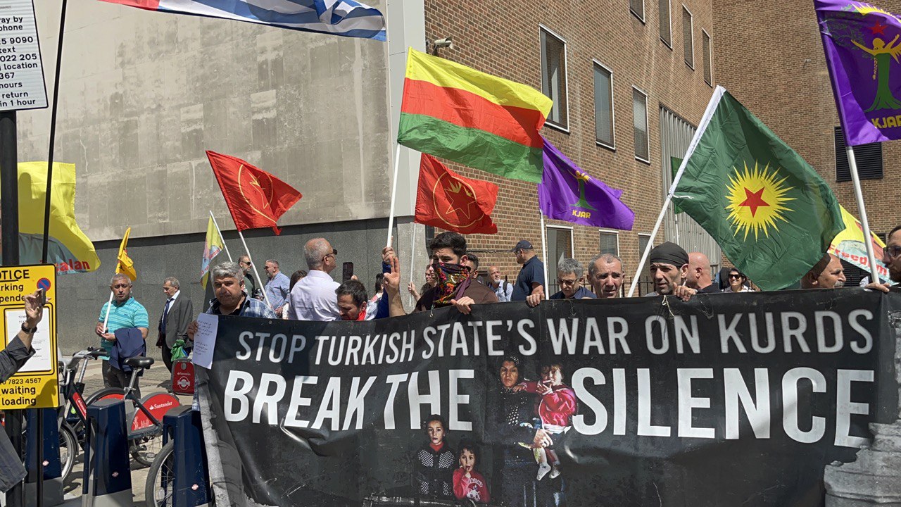 LONDON – Duh li Londonê Ciwanên TCS û Meclisa Gelê Kurd lê li ber Sefaretxaneya Iraqê ji ber êrîşên dawî yên li dijî Mexmûrê xwepêşandanek li dar xistin. Ciwanan bi armanca ku dewleta Iraqê li dijî Mexmûrê dest ji hevkariya dewleta Tirk berde, pankarta “Şerê dewleta Tirk li dijî Kurdan rawestîne” vekirin.
