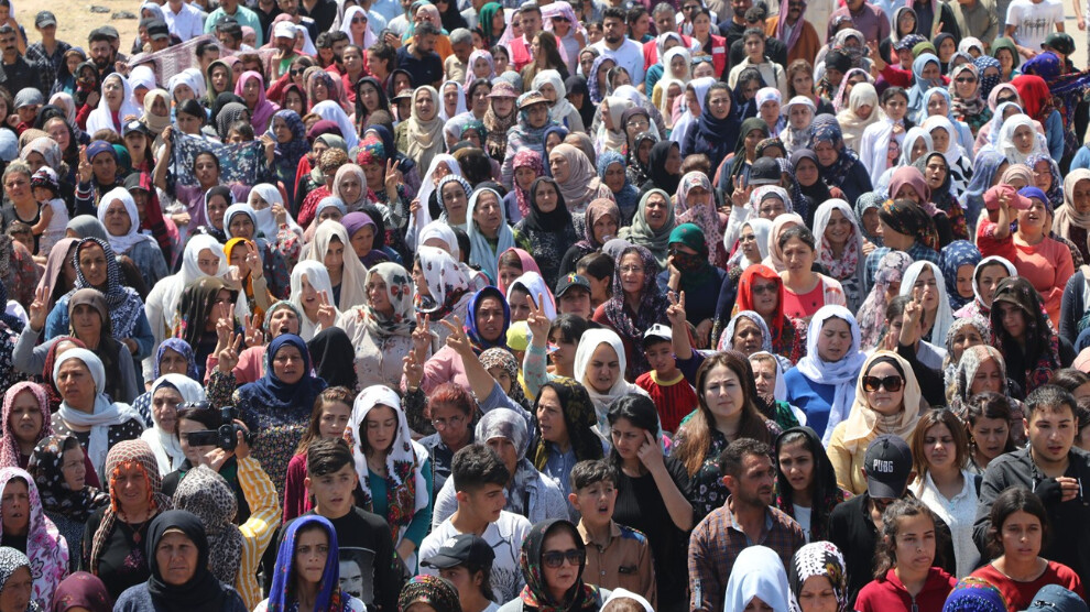 ŞEHBA – Bi hezaran koçberên Efrînê û niştecihên katnona Şehbayê ji bo şermezarkirina bêdengiya Rûsyayê ya li hember êrîşên dewleta Tirk a dagirker ên li djiî xelkê herêmê, li xaçrêya gundê Wehşiyê yê girêdayî navçeya Fafînê ya kantona Şehbayê kom bûn û dest bi meşê kir. Malbatên şehîdan, endamên saziyan, yekitiyên sivîl û nûnerên partiyên siyasî jî tevlî çalakiyê bûn.