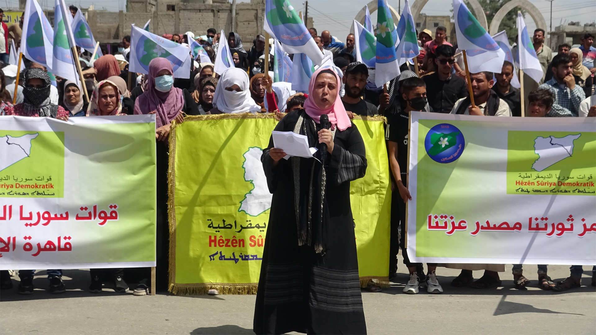 Li Çerxerêya Neîm girse kom bû û berdevka Meclisa Ciwanan a Partiya Sûriya Pêşerojê Fida El Meşleb daxuyanî xwend. Di daxuyaniyê de wiha hat gotin: “Em ji çîrokên civaka navneteweyî û mafên mirovan bêzar bûn. Ev awazên ku li ber wan mirov tên qetilkirin. Sûcên hovane û terora rejîma Tirk a Dagirker Faşist Qirker, rûyê rastîn ê civaka navneteweyî eşkere kir û ew xist xana şirîkatiyê û komplogerê li dijî gelên ku ji bo azadî û rûmet û aştiyê tê dikoşin.”