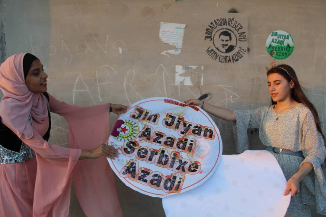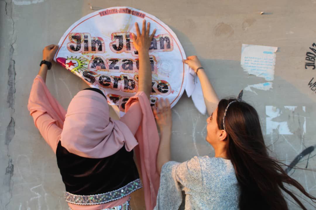 HELEB – Ji bo danasîna hemleya “Jin Jiyan Azadî serbixe Azadî” jinên ciwan bi afîşan bajarê xwe xemlandin. Jinên ciwan ên Hîlala zêrîn jî bi çil û bergên xwe tevlî çalakîye bûn. Her wiha jinên ciwan dan diyar kirin ku hemelya nû ji bo hemû jinên ciwan ên ku ji welatê xwe hes dikin e û banga hemû jinên ciwan û gelê xwe kirin ku di bin slogana “Jin Jiyan Azadî serbixe Azadî” de bibin yek. Ji bo em karibin azadîya fîzîkî ya Rêber APO misoger bikin jinên ciwan diyar kirin ku vê bi coşekî mezin hemleya xwe mezin bikin.