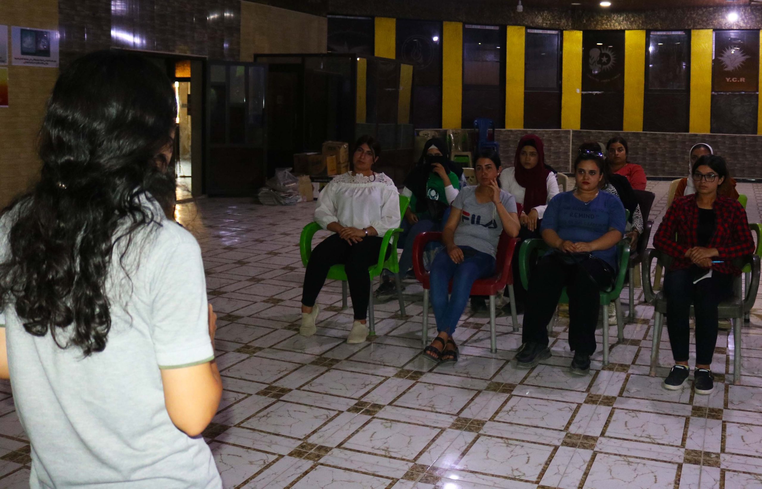 QAMIŞLO – Jinên ciwan ên Partiya Yekitiya Demokratîk (PYD) a Qamişlo ji bo balê bikşînin ser êrişên di van dema dawî îro semînerek li dar xist. Semîner saet 6 li navendê ciwanan a bajarê Qamişlo bi deqeyek rêzgirtina ji bo hemû şehîdên şoreşê destpê kir. Semîner di çarçoveya kampanya ‘Jin Jiyan Azadî Serbixe Azadî’ bi zimanê erebî hate birêvebirin. Semînar ji aliyê endamê Jinên ciwan ên PYD ve hate dayîn. Armanca semînera ew e ku jinên ciwan ji êrîşên dewleta Tirk a faşîst hişyar bibin û pêwîstiya xweparastinê hate nîqaşkirin. Di dawiyê de jî kurtefîlmek li ser xweparastinê hat nîşandan.