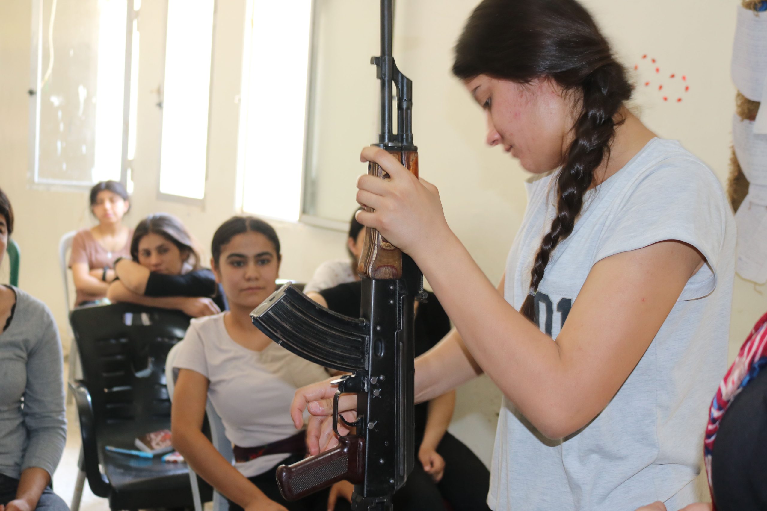 QAMIŞLO – Yekîtiya Jinên Ciwan ji bo pêşxistina parastinê, girîngî didi perwerdê ye silah. Di çarçoveya kampanya “Jin Jiyan Azadî Serbixe Azadî” jinên ciwan li bajarê Qamişlo perwerdê ye silah organîze kirin. Di perwerde de jihevxistin û komkirin çekan bûn. Armanca kampanya “Jin Jiyan Azadî Serbixe Azadî” ew e ku jinên ciwan nava şer de ji rol û erk bigren û vê welatê xwe li hemberî hemû êrîşna biparezin. Jinên ciwan dan diyar kirin ku biçekbûn mafê wan ê rewa ye û ji bo parastina axa xwe, xwe perwerde dikin. Ger êrişek hovane çêbe hemû jinên herêmê dê li dijî êrişan bisekinin.