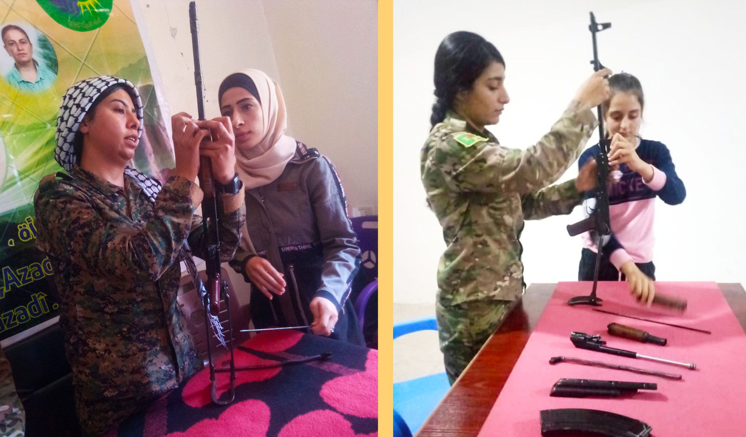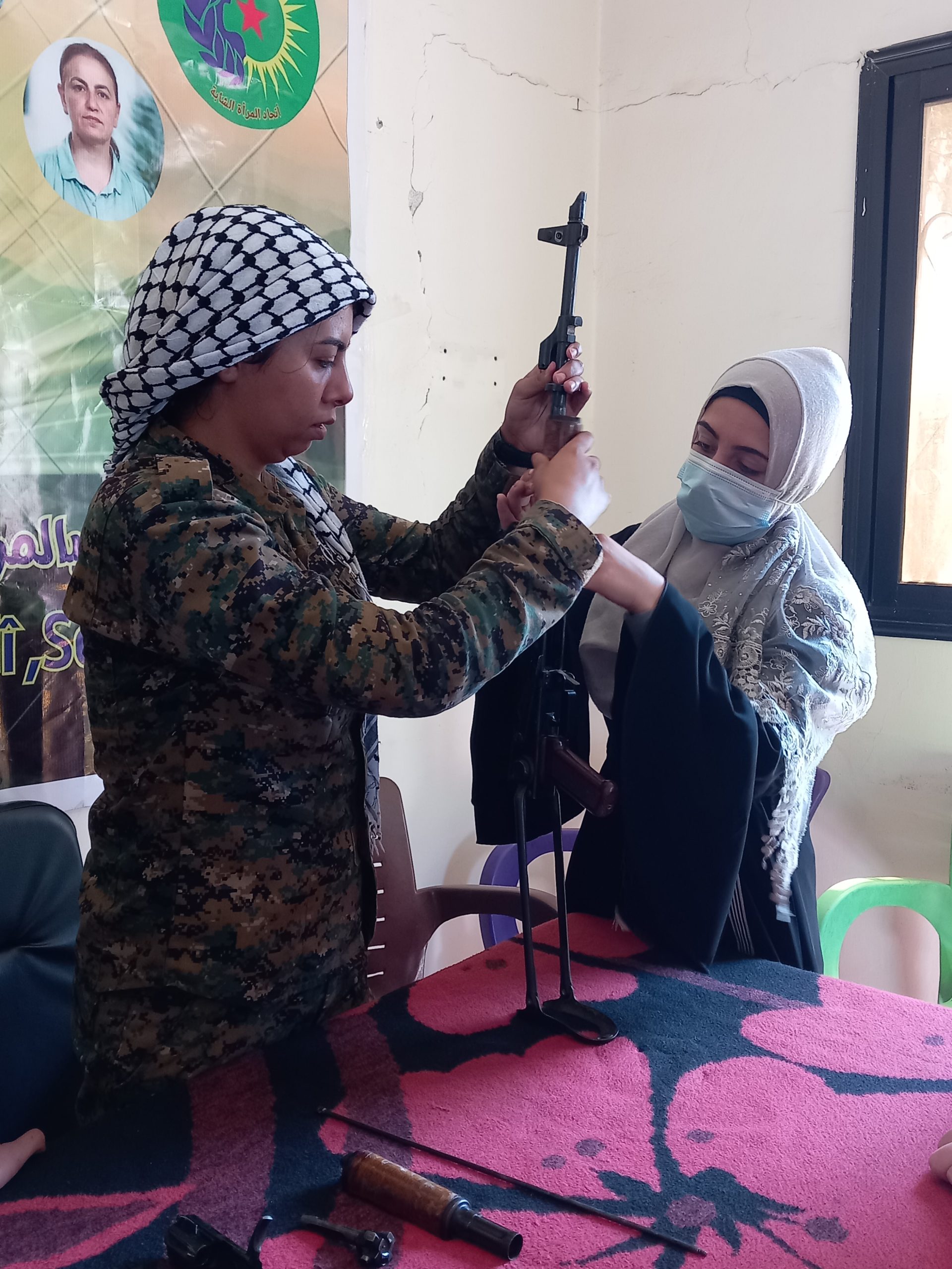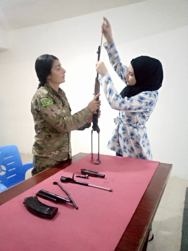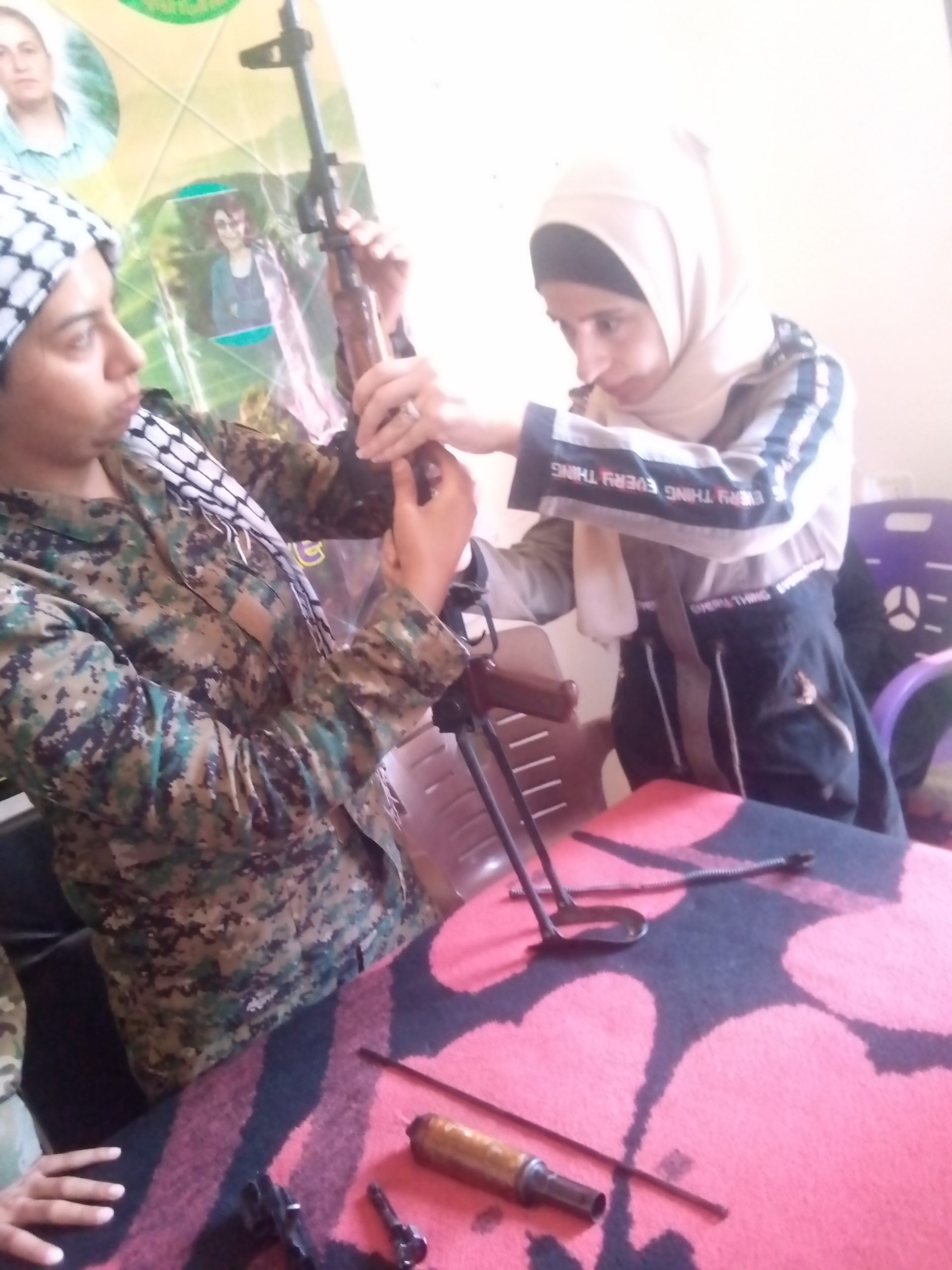 TAPQA – Îro jinên ciwan li Tapqayê hatin cem hev û perwerdeya çekan organîze kirin. Di perwerde de jihevxistin û komkirin çekan bûn. Perwerdeya çekan di çarçoveya xebatên kampanya “Jin Jiyan Azadî Serbixe Azadî” hat danîn. Armanca kampanya “Jin Jiyan Azadî Serbixe Azadî” ew e ku jinên ciwan nava şer de ji rol û erk bigren û vê welatê xwe li hemberî hemû êrîşna biparezin.