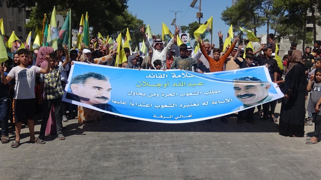 REQA- Şêniyên bajarê Reqayê, endamên meclisên sivîl û leşkerî, partiyên siyasî û rêxistinên jin û ciwnan bi heman armancê meşek li dar xist. Di meşê de wêneyên Rêber Apo û pankertên bi nivîsên “Selametiya Rêber Apo daxwaza gelên azad e” hatin bilindkirin.