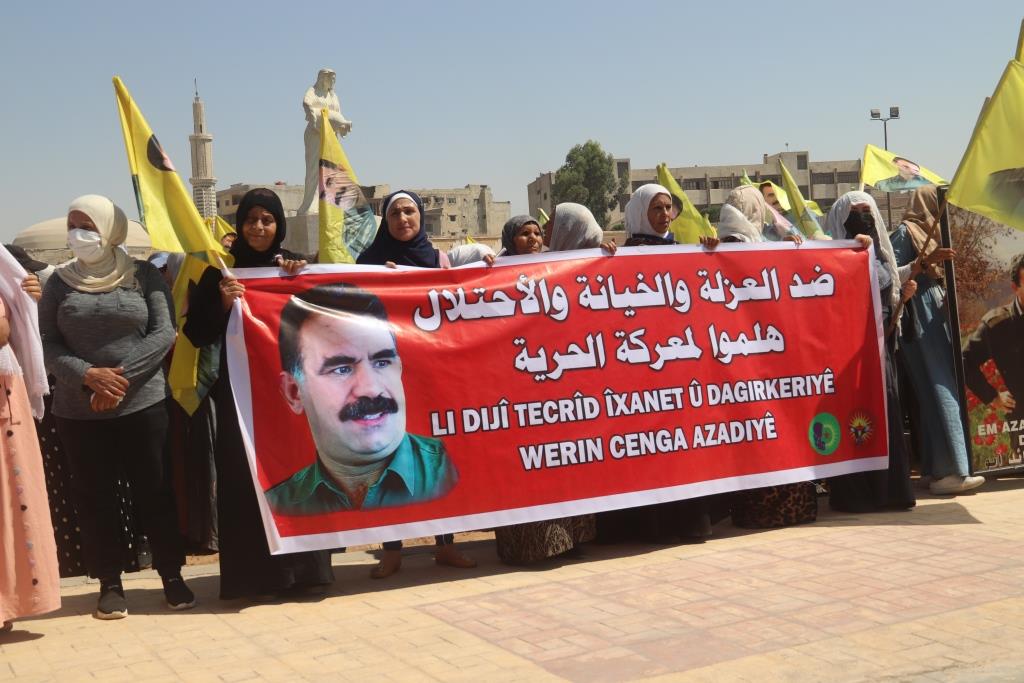REQA – Îro bi Pêşengtîya Tevgera Ciwanên Şoreşger ê Sûrîyê û Yekîtîya Jinên Ciwan li dijî Gefên li ser Jîyana Rêber Apo meşekê Girseyî li darxistin. Endamên sazîya sivîl û Rêxistinên Jinan Tevlî Meşê bûn. Di Meşê de Alên Rêber Apo pankartên ku li ser hatibû nivîsandin ”kesek Nikarê Roja me Tarî Bike” hatin hildan.