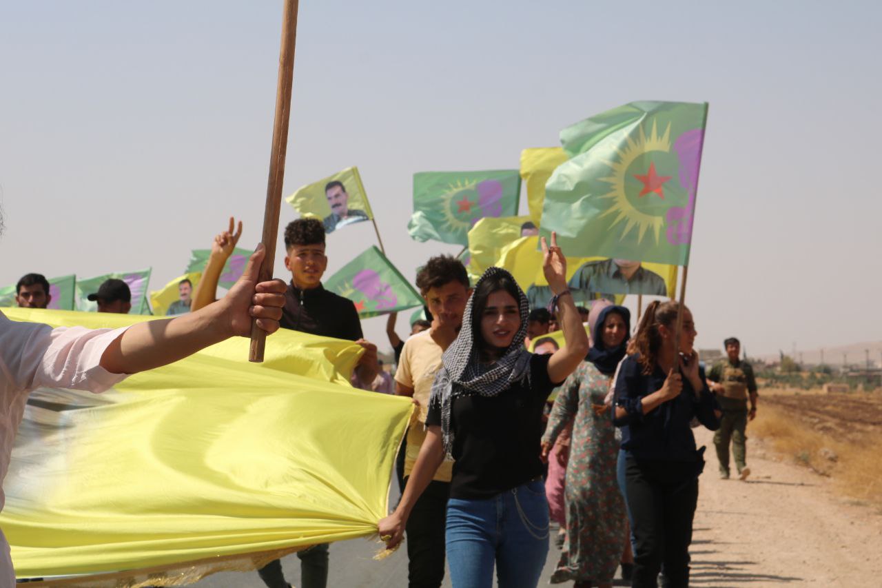 KOBANE – Jinên ciwan ên Kobanê li dijî tecrîda girankirî li ser Rêber APO meşîyan. Meş li pêşîya sazîya malbata şehîdan despêkir û heya meclîsa a gel a çelebî berdewam kir. Li vê derê daxuyanî hat dayîn. Li ser navê Yekîtita Jinên ciwan Silava Nehsan axafî. Silava da diyar kirin ku derve azadîya fizîkî ya Rêber APO ti armancek a kampanya nû ”Jin Jiyan Azadî serbixe Azadî” nîne. Ger azadîya fîzikî ya Rêber APO naye pêkanîn Kurdistanekî yekbûyî, azadîya jinan, gelan û hemû bindestan ne mûmkîne. Ji ber vê yekî hezên hegemon û dewleta tirk a dagirker her diçe tecrîde li ser Rêber APO giran dikin.
