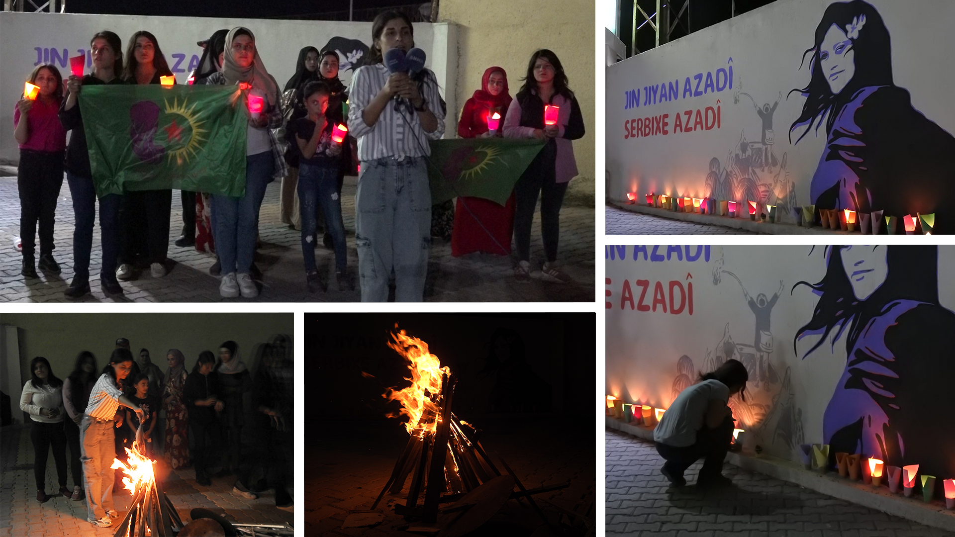 Jinên Ciwan Hesekê mûm pexistîn û piştî daxuyanî ber dîwarê danî. Keleka we jinên Ciwan jî agirekê pêxistin weke sembola serhildana jin li Rojhilatê Kurdistan û Îran şewtand.