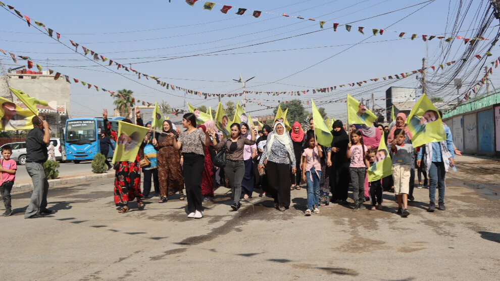 QAMIŞLO – Gelên Qamişlo, bajarok û gundewarên wê bi peşengiya Însîyatîfa Gel a Herêma Cizîrê berê xwe da konê çalakiya ya li nêzîkî Yarîgeha 12’ê Adarê hat wergirtin. Çalakî ji bo şikandina tecrîda girankirî û azadiya fîzîkî ya Rêber APO hate lidarxistin. Çalakî bi hilgirtina pankarta “Azadiya Rêber Apo misogeriya aştiya Rojhilata Navîn e” dest pê kir. Di çalakiyê de wêneyên Rêber APO hatin hildan û bênavber dirûşma “Bê Serok jiyan nabe” berz kirin.