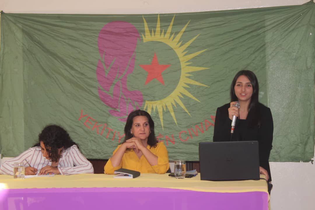 QAMIŞLO – Îro li bajarê Qamişlo Yekîtiya Jinên Ciwan komxebatek li darxistin. Yekîtiya Jinên Ciwan îro li bajarê Qamişlo taxa Hilêliyê komxebatek li ser şîdeta li dijî jinê li darxistin.Di komxebatê de destpêkê deqeyeke rêzgirtin li ser rihê şehîdan hat seknandin,piştre axaftina vekirnê hat kirin,semîner li ser tûndiya li ser jinê û zihniyeta bavikselar ji aliyê komîta Jineolojî hat dayîn û sinevizyon hat tamaşekirin,di dawiyê de encamname hat xwendin û komxebat bi siloganên “JİN JİYAN AZADΔ û “BÊ SEROK JİYAN NABE” bi dawî bû.