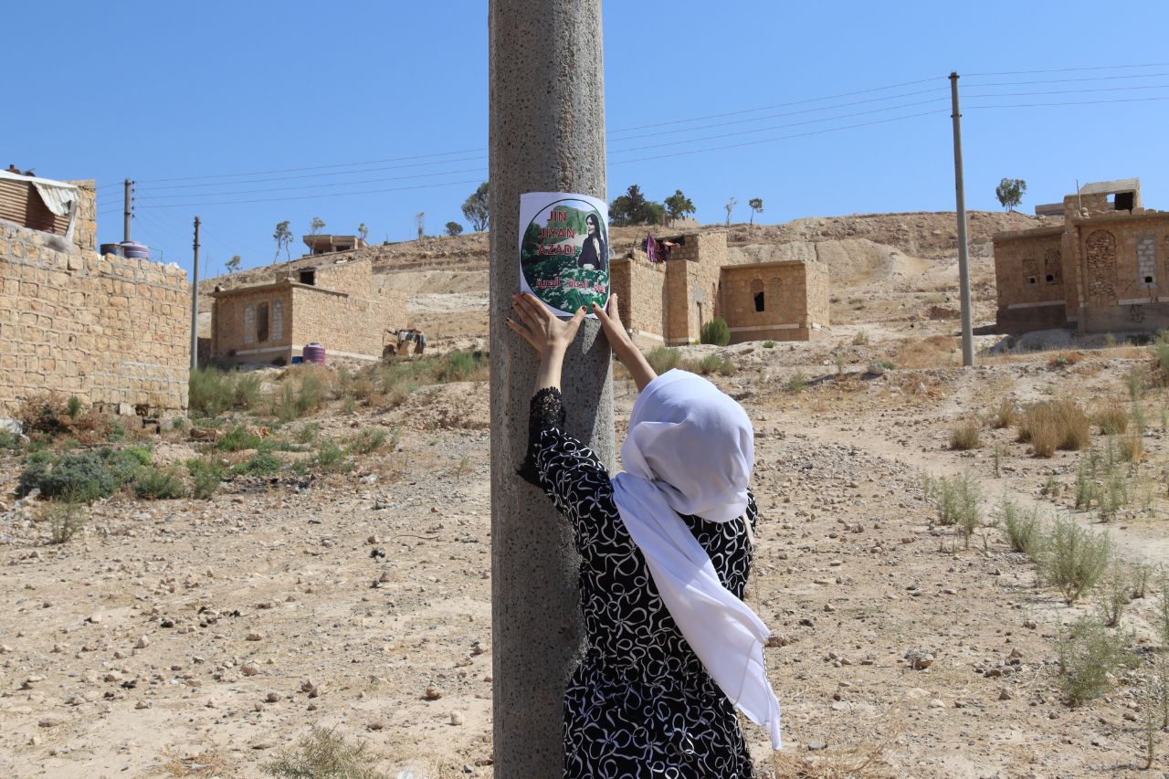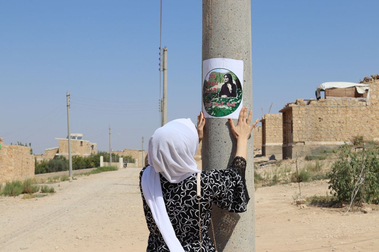 Ji bo bîranîna şehîd Jîna Emînî û ji bo mayînde kirina bîranîna wê weke jina ku li Îranê şoreşa li dijî koletiyê pêk anîye, her wiha posterên şehîd Jîna Emînî li hemû sazî û komîteyên rêveberiya sivîl a li bajarê Tebqayê û gundên wê li ser dîwarên bajêr hatine daliqandin.