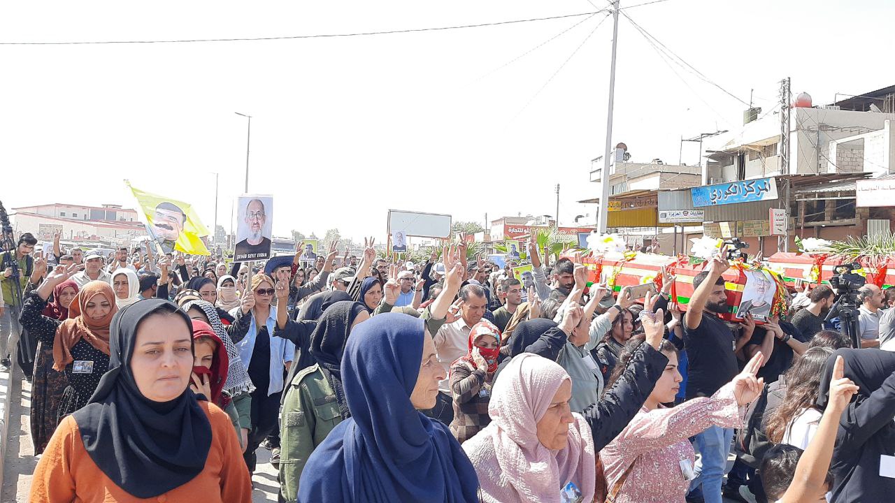 Bi hezaran xelkê, rûspiyên êl û eşîrên Bakur û Rojhilatê Sûriyeyê li qada goristanê li benda karwana şehîdan in. Qad bi wêneyên şehîdan û kulîlkan hatiye xemilandin.
