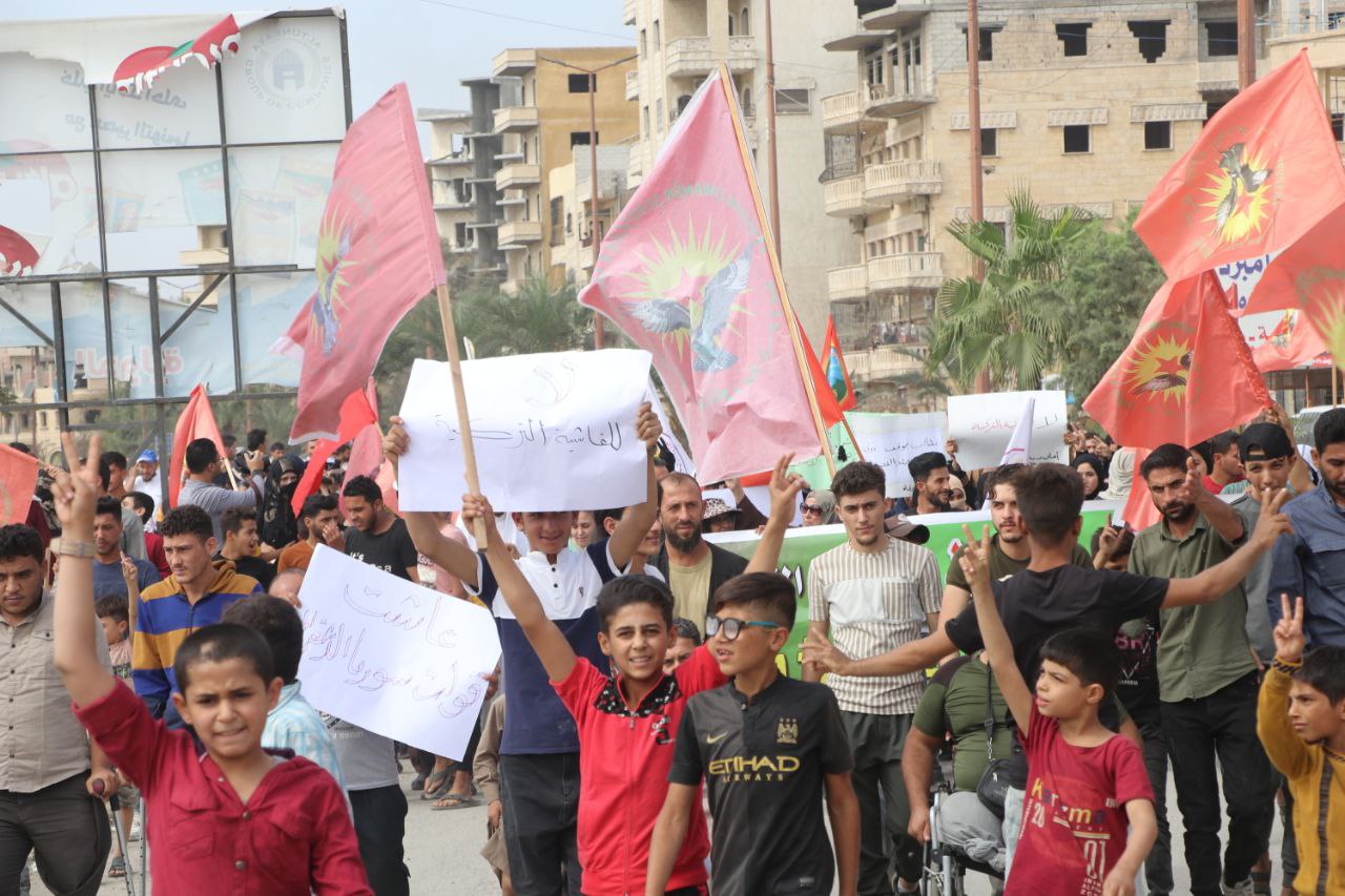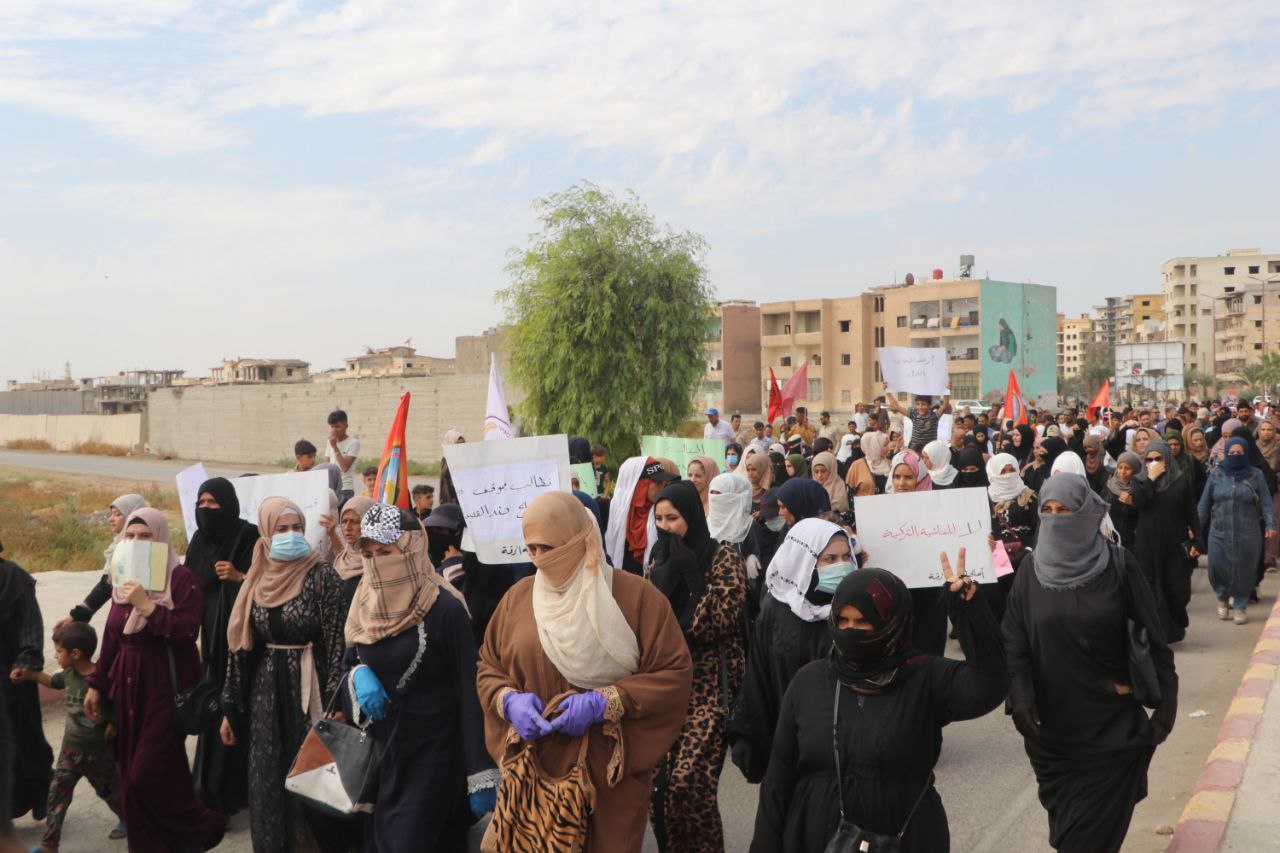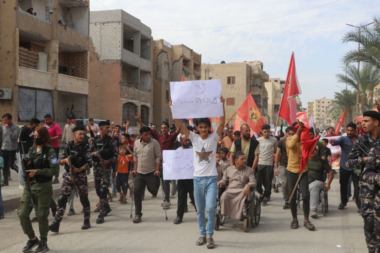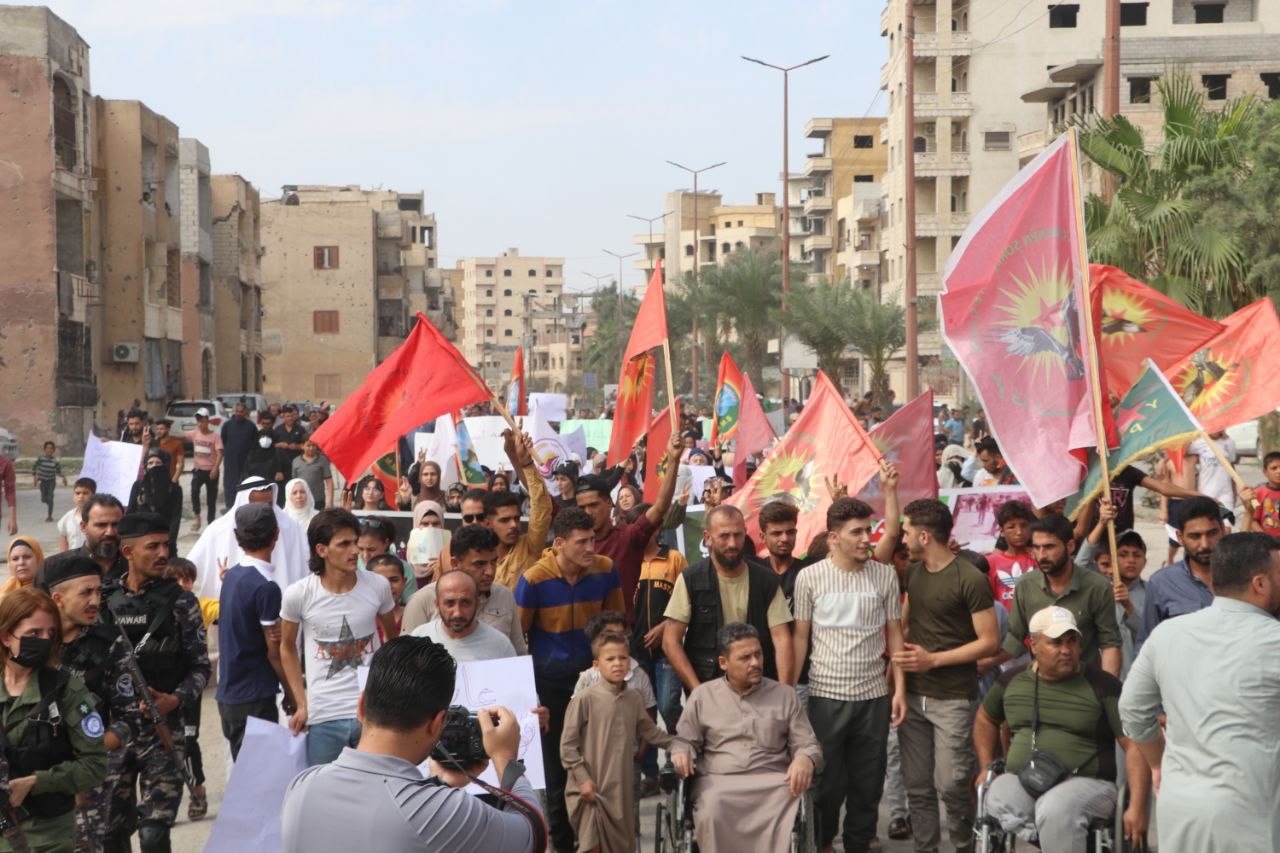 Li ser êrîşên dawî yên duh ên dewleta Tirk a dagirker bi balafirên bêmirov ên li ser herêmên Bakur û Rojhilatê Sûriyê, ku di encamê de gelek herêmên Cezîre û Kobanê hedef girtin û encamê êrîşan de bandor li navendên xizmetguzariyê û sivîlan kir, meşekî protestoyî organîze kir.