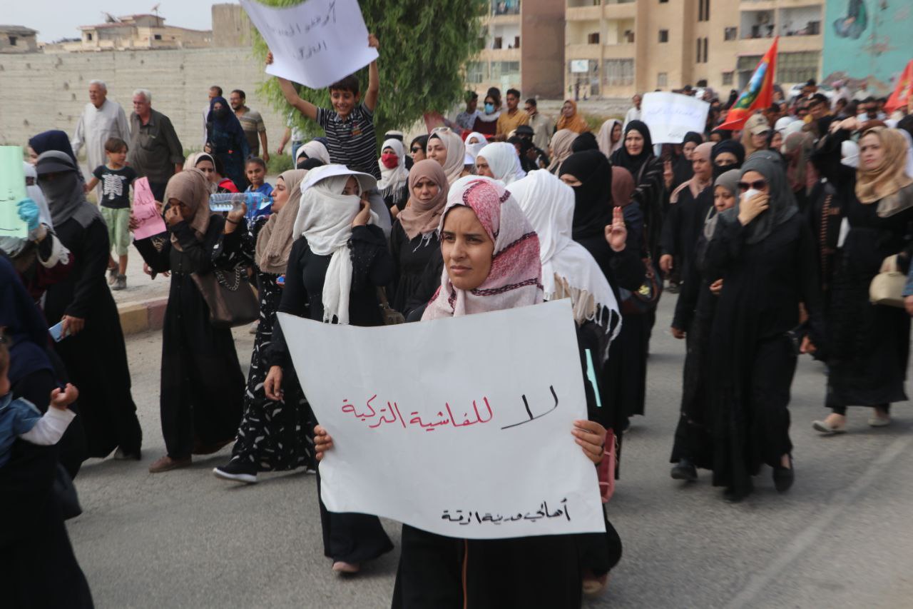 REQA – Meclisa Giştî ya Reqqayê li dijî dagirkeriya Dewleta Tirk û êrîşên wê meşeke şermezarkirinê li dar xist û daxwaza avakirina herêmeke qedexe ya firînê dike.