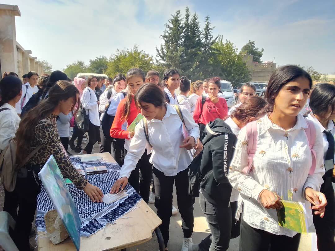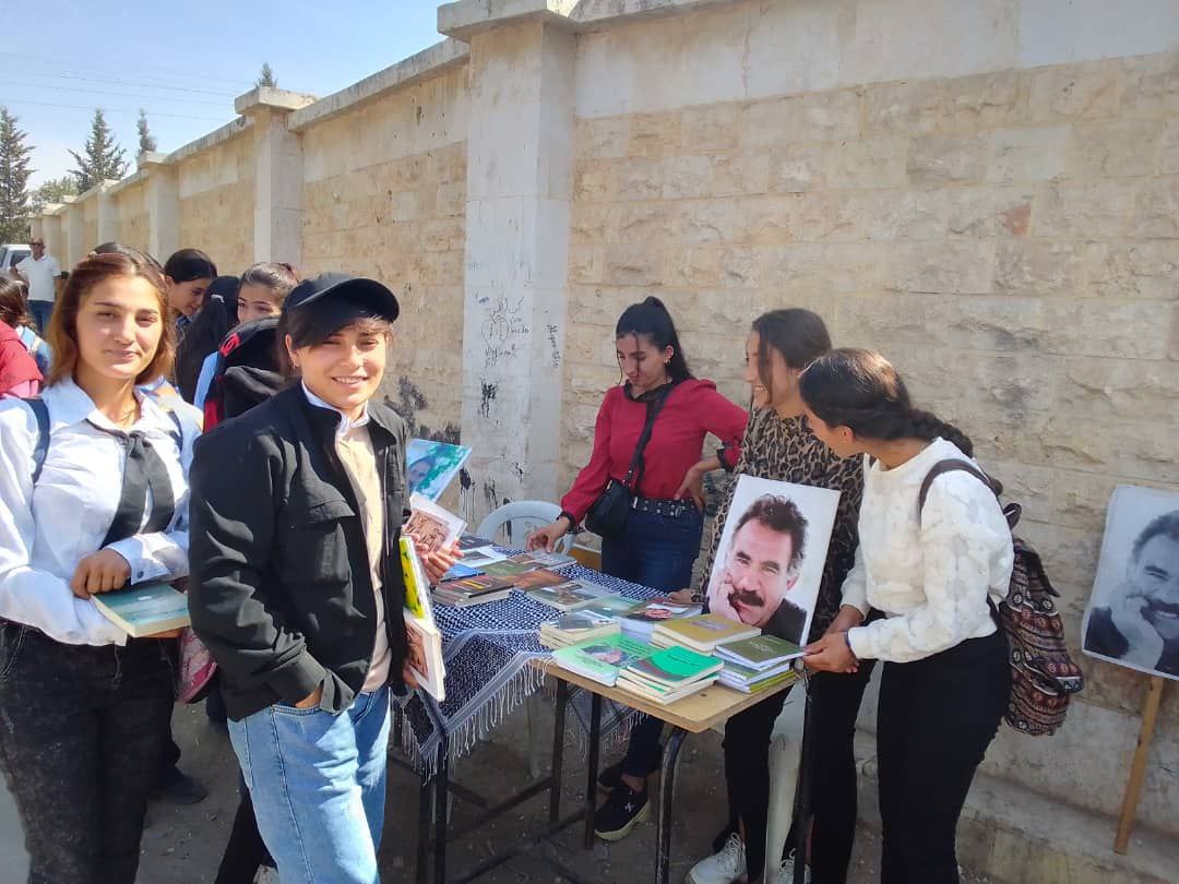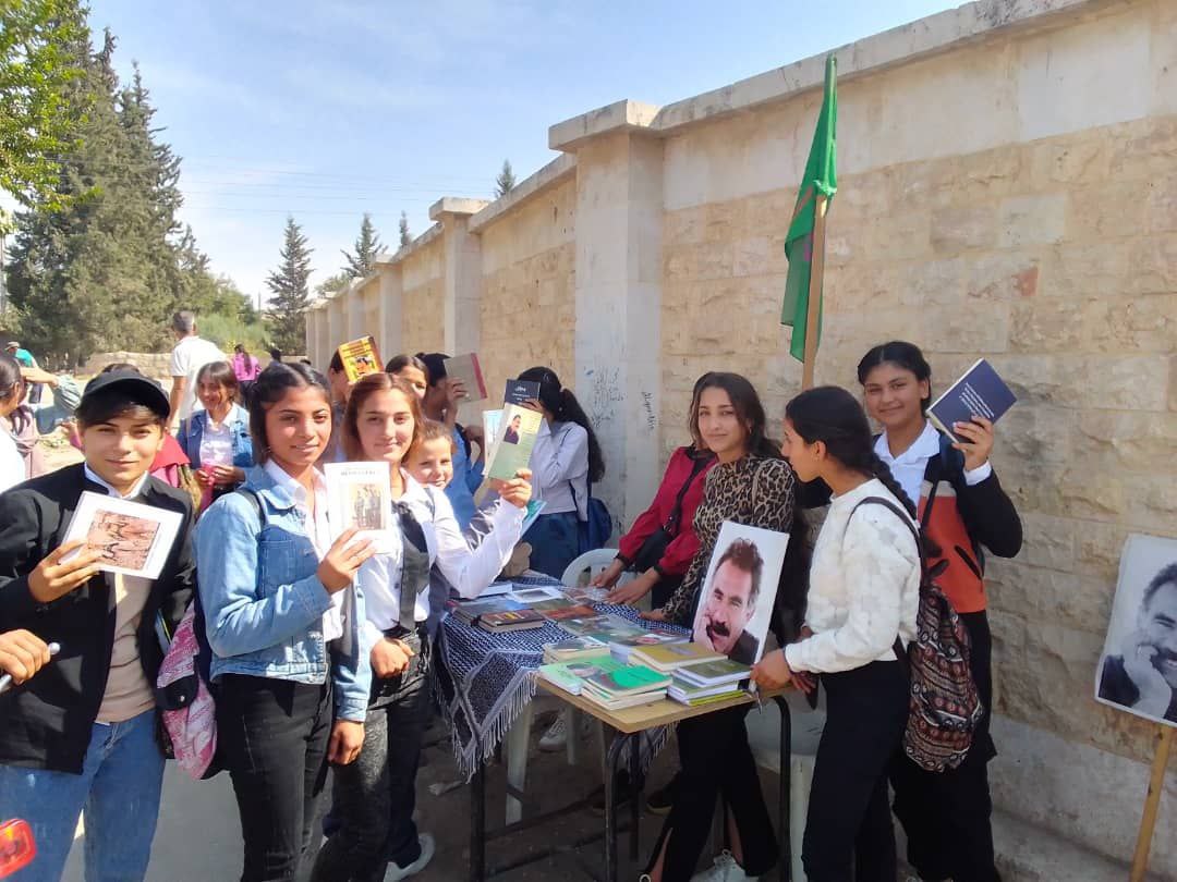 KOBANÊ – Yekîtîya Jinên Ciwan li hemberî Komploya navdewletî li Kobanê li navça qinê, standa pirtûkên Rêber APO lidarxistin. Jinên ciwan û ciwan bi mereqeki mezin pirtûkên Rêber APO xwandin û birin.
