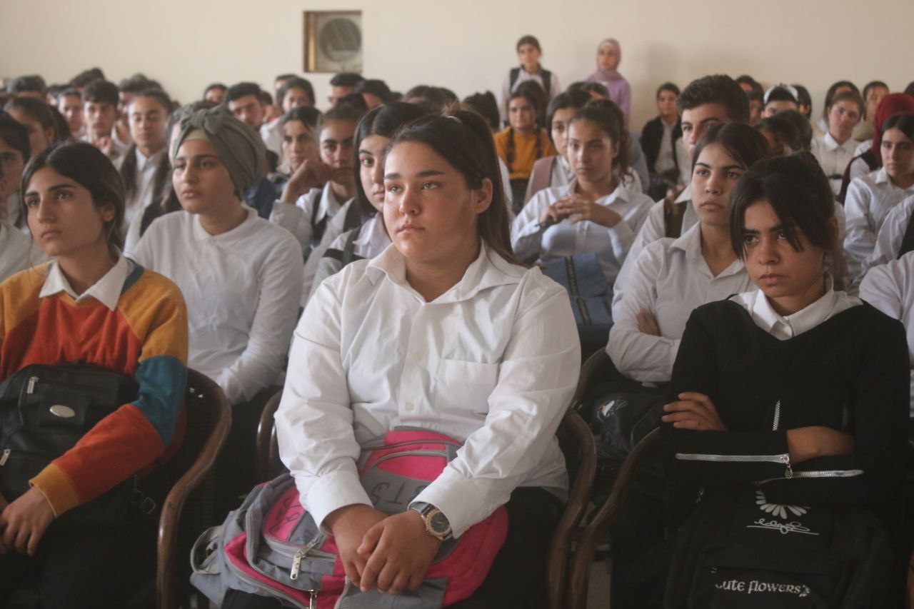 KOBANÊ – Îro Tevgera Xwendekarên Demokratîk a Kobanê li ser komploya navnetewî a li dijî Rêber Apo ya ku di 9’ê Cotmehê sala 1998’an de hatibû dest pê kirin seminerekî da. Semîner ji nêzî 100 xwendekarên refên amadeyî yên dibistana Şehîd Hogir re hat dayîn. Di semînerê de xwedîderketina fikrê Rêber Apo û berpisyartiya xwendekaran hate diyar kirin. Piştî semîner xwendekaran bi hêrsekî mezin tevlî meşa giştî li bajarê Kobanê bûn.