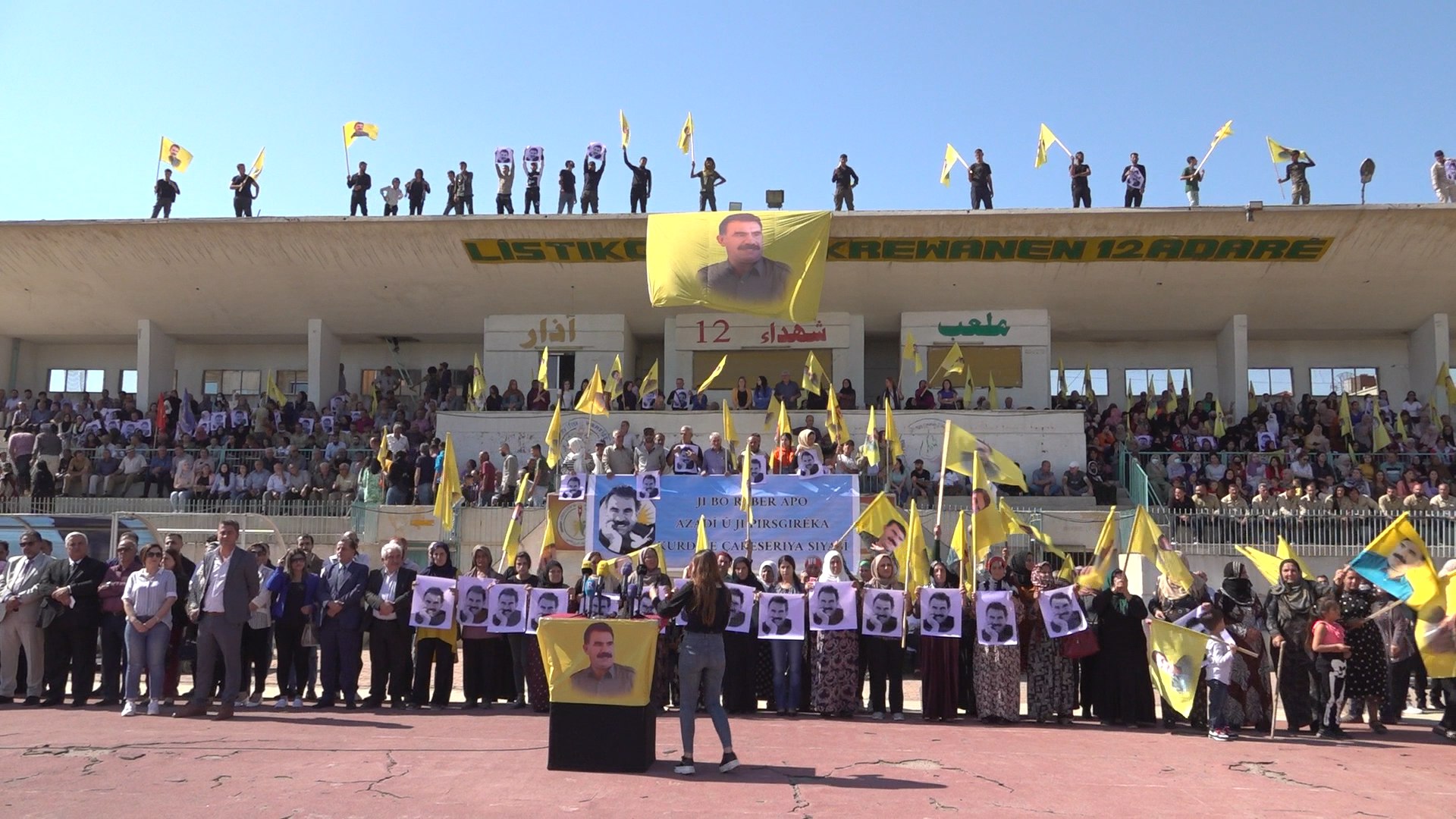 QAMIŞLO – Pêngava, ku ji aliyê Platforma ji Rêber Apo re Azadî ji Pirsgirêka Kurd re Çareseri ve li 74 navendên cîhanê hatiye destpêkirin, li Bakûr û Rojhilatê Suriyeyê jî deng veda. Înîsiyatîfa Gel a Bakûr û Rojhilatê Suriyeyê derbarê mijarê di li Lîstokgeha Şehîdên 12’yê Adarê ya Qamişlo daxuyaniyek da çapemeniyê. Endamên Rêveberiya Xweser, rêveber û endamên rêxistinên sivîl-civakî, partîyên siyasî, rûsipiyên eşîrên Kurd û Ereb, rêxistinên jin û ciwanan, TEV-DEM û bi sedan kes tevlî daxuyaniyê bûn.