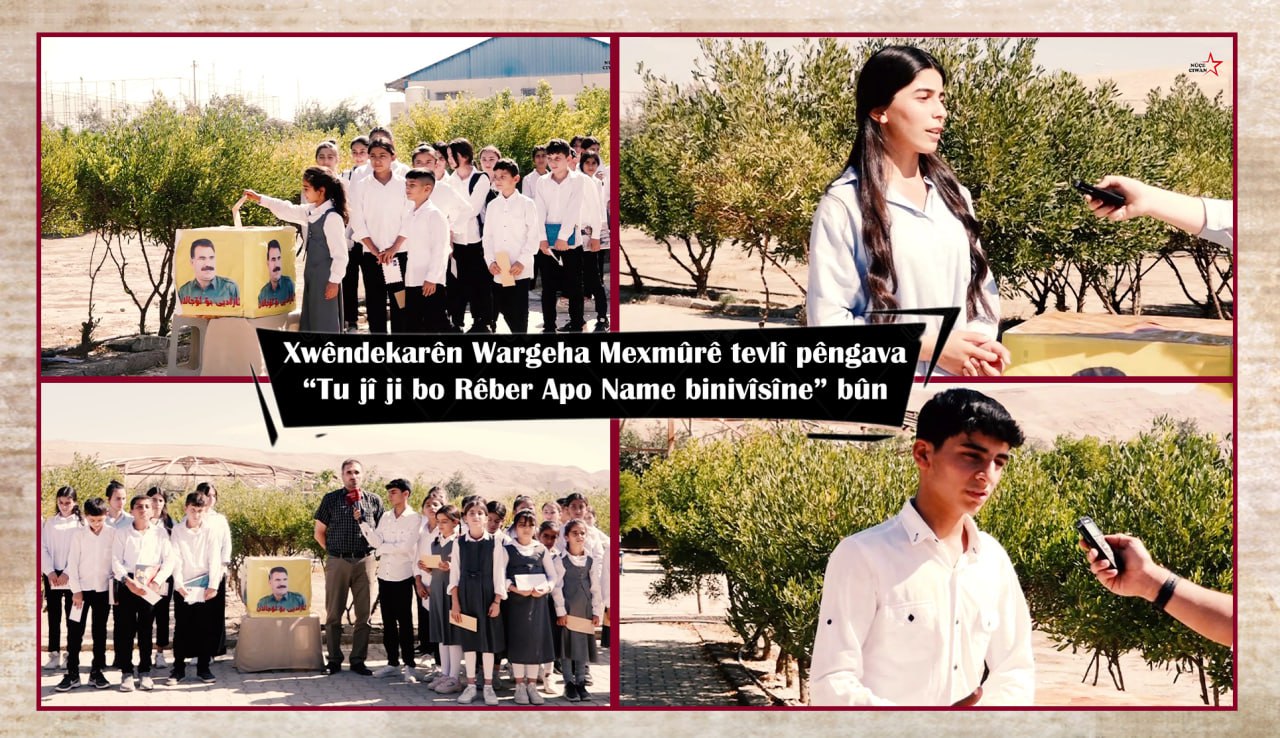 MEXMÛR – Xwêndekarên wargeha Şehîd Rustem Cûdî di berdewamîya pêngavê ku Tevgera Ciwanên Mexmûrê da bûn destpê kirin Name yê xwe ji bo Rêber Apo nivîsandin û di dibistanên xwe de avêtin sunduqê. 28’ê Tebaxa îsal li Wargeha Şehîd Rustem Cudî ji bo azadiya fîzîkî ya Rêber Apo pêngavek a name nivîsandinê bi pêşengtiya Tevgera Ciwanên Mexmûre ya bi navê ‘JI BO RÊBER APO TU JÎ NAMEYEK BINIVÎSE’ hatibû destpêkirin.