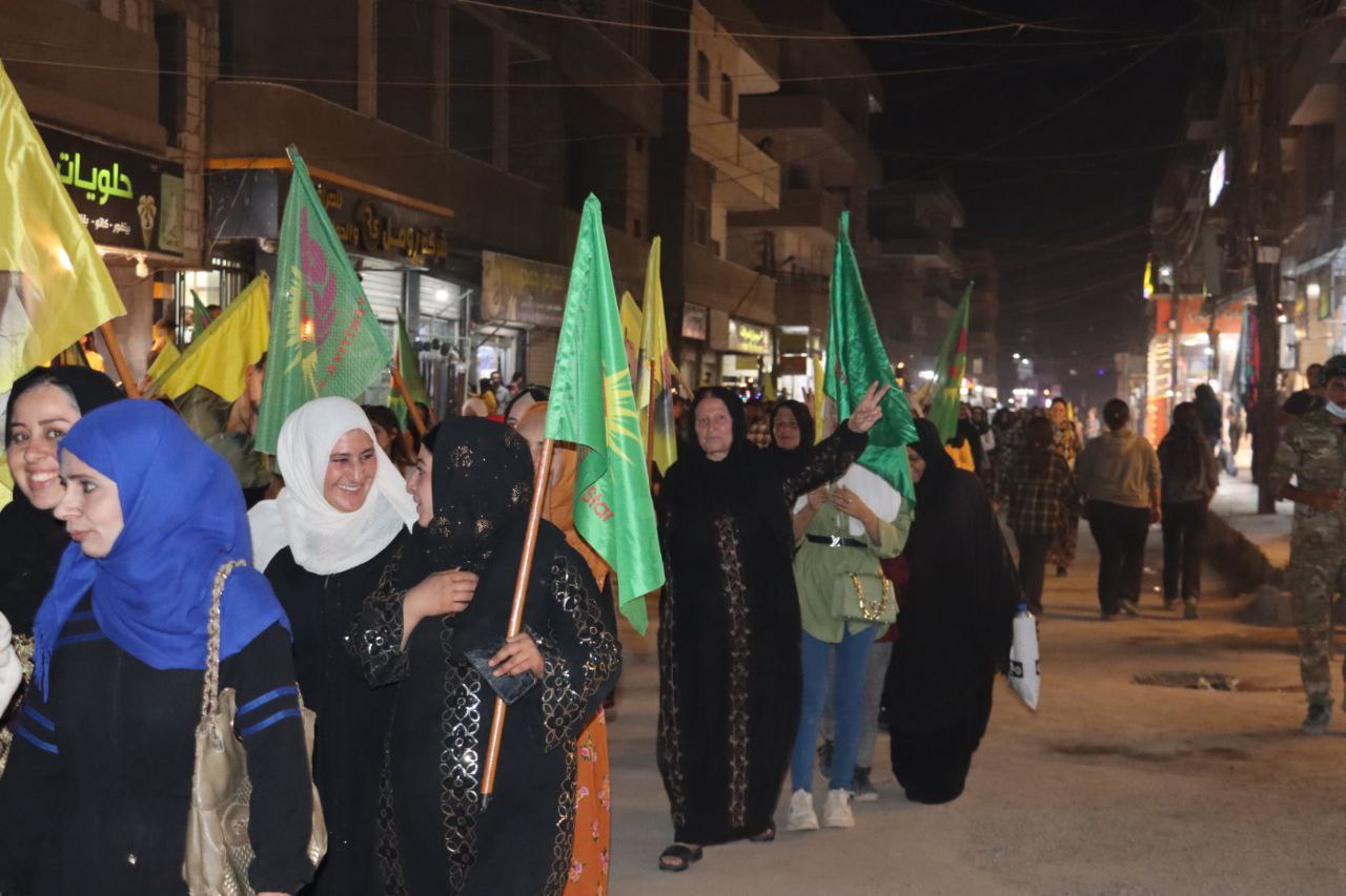 HESEKÊ – Îro Yekîtîya bi peşgentiye Jinên Ciwan li bajarê hesekê Meş ji bo pêngava nû ya ‘’Ji Rêber Apo re Azadî Ji Pirsgirêka Kurd re Çareserî’’ hat li darxistin. Meş ji çarxereya Kevokê destpêkir û li çarxereya Şehid Serhed bi dawî bû. Bi dehan Jinên Ciwan tevlî meşe bûn. Di meşe de alên Rêber Apo, alê Jinên Ciwan û poankartên ku li ser hatîye nivisandin ‘’Ji Rêber Apo Azadî Ji Pirsgirêka Kurd re Çareserî’’ hatin hildan. Jinên Ciwan bê navber Sloganên ‘’Bê Serok Jîyan Nabê’’ û ‘’ Ciwan Fedayî Rêber Apo’’ berz dikirin.
