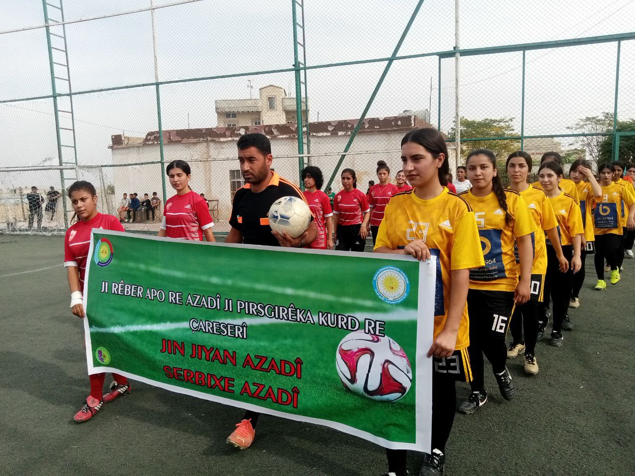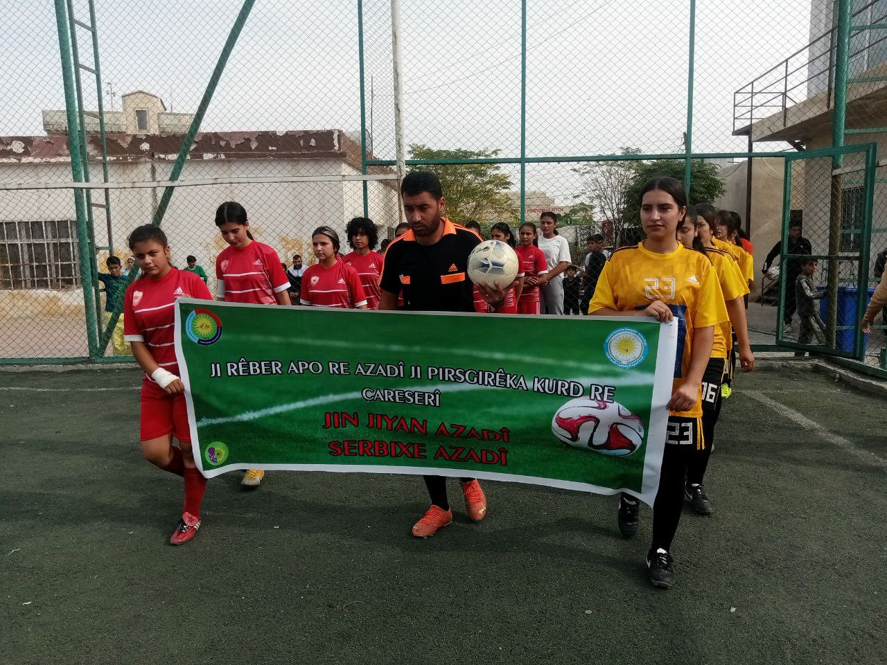 NAVENDA NUÇEYAN – Ji bo silav kirina pengava “Ji Rêber APO re Azadî, ji Pirsgirêka Kurd re Çareseriya Siyasî, Jinên ciwan a werzîs van lehengiyê xwe li herma firatê tornuva futbole destpêkir, ev tornuva 6 rojan berdewam bike.