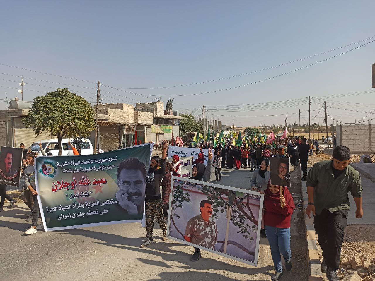 MINBIC – Yekîtiya Jinên Ciwan a Minbicê û gundewarê wê, ji bo azadiya fîzîkî ya Rêber Apo, li navçeya Ebû Qelqel a gundewarên Minbicê meşek li dar xist. Meş bi dirûşmeyên şoreşgerî û daxwazên azadiya fîzîkî ya Rêber Apodest pê kir, piştre meş ji bazara Ebû Qelqel re derbas bû û gihişt ber navenda Mala Jinê ya Ebû Qelqelê û li ser gihîştinê deqeyek rêz hat girtin ser giyanên şehîdan. Piştre li ser navê Yekîtiya Jinên Ciwan ên Minbicê û gundewarê wê, Amîna Barkal axivî û got: