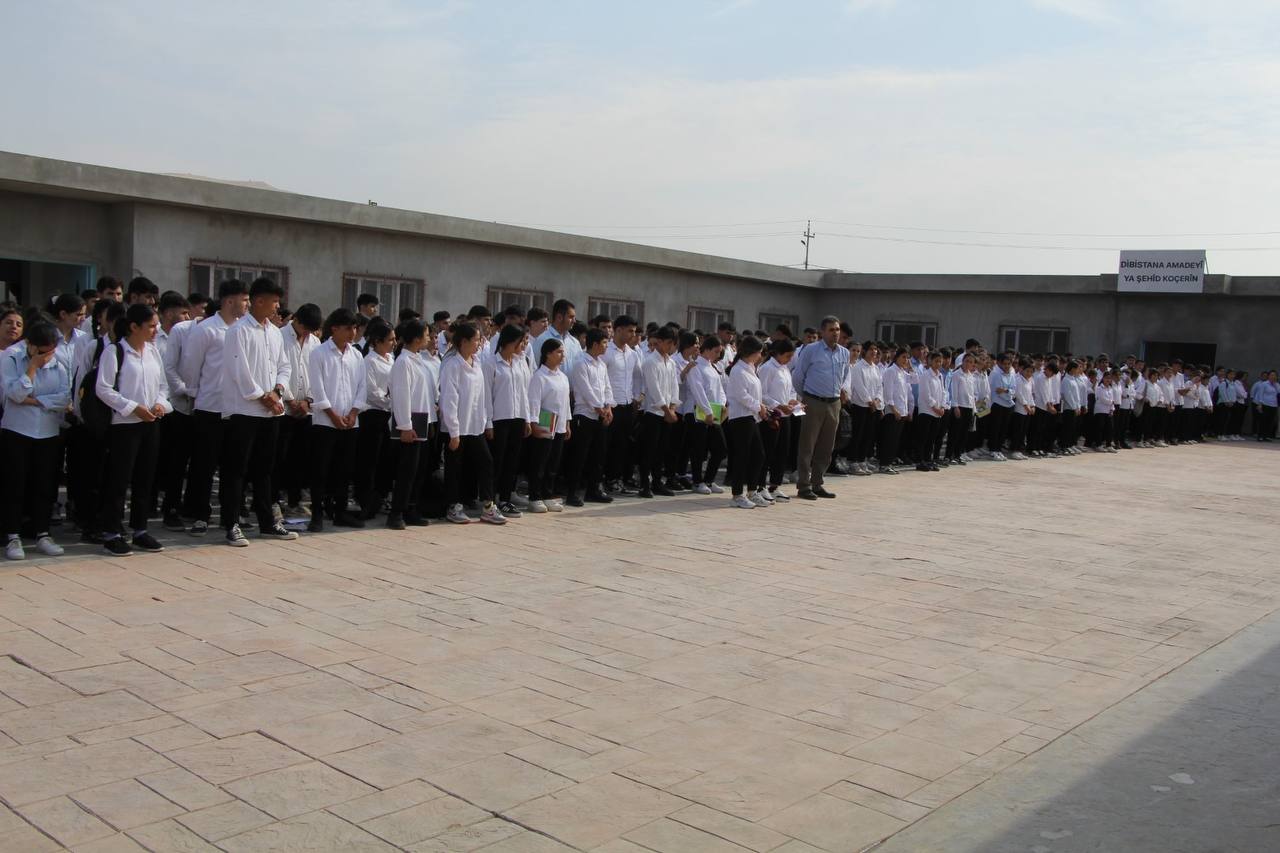 MEXMÛR – Qada Perwerdeyê ya Wargeha Penaberan a Şehîd Rustem Cûdî (Mexmûr) dijî tecrîda girankirî ya li ser Rêber APO daxuyaniyek da. Daxuyanî bi beşdarbûna hemû xwendevan û mamosteyan a li dibistana Amadeyî ya Şehîd Koçerîn di kesayeta şehîdên 1’ê Mijdarê de ji bo tevahî şehîdên tevgera azadiya Kurdistanê deqeyek rêzgirtinê destpê kir. Piştî rêzgirtinê daxuyanî ji aliyê xwendevana bi navê Çîdem Oren ve hat xwendin.