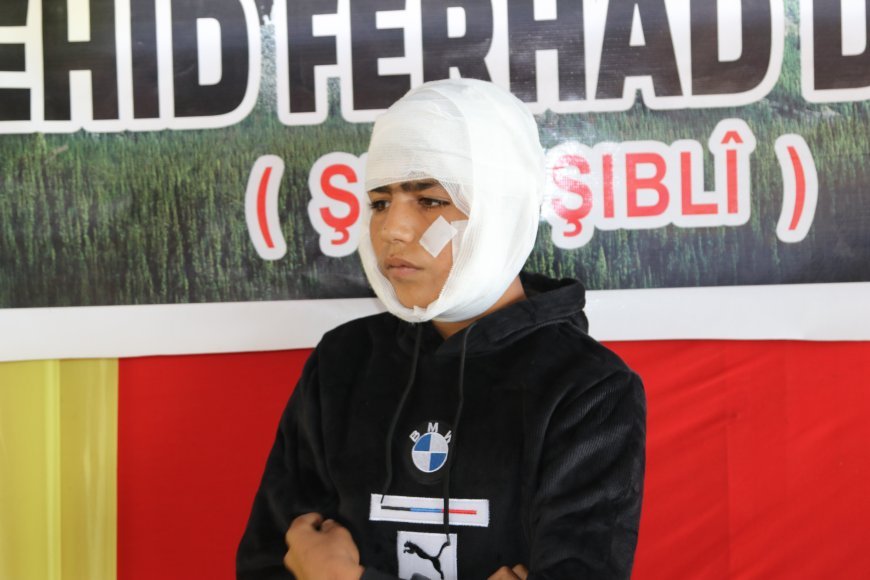 Ehmed Şahîn ê 11 salî tevî ku birînên wî rihet nebûne jî, duh beşdarî merasîma oxirkirina şehîd Şiblî bû, îro jî beşdarî merasîma sersaxiyê bû.