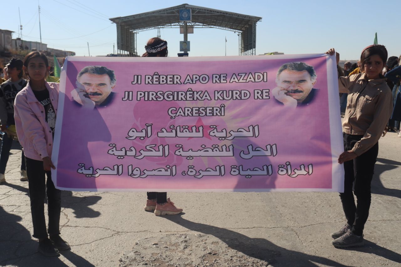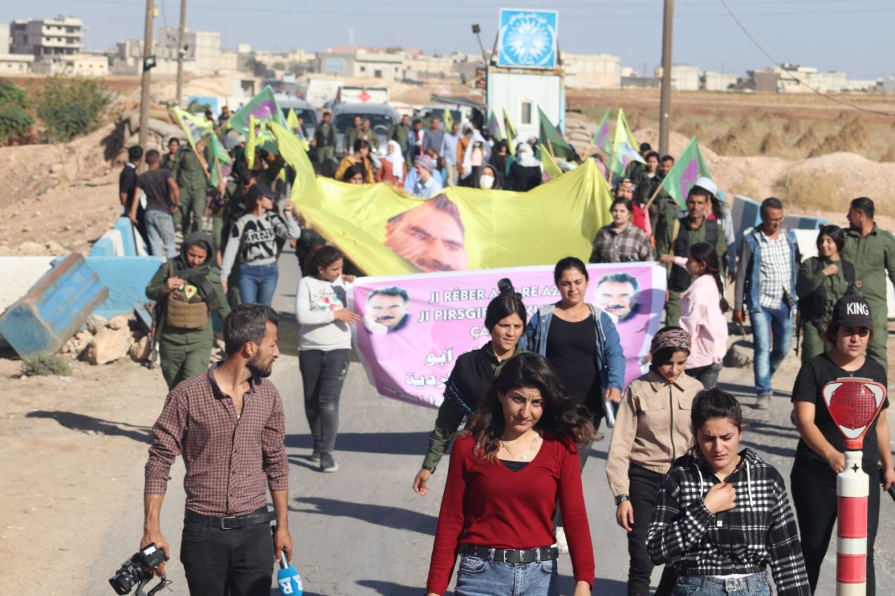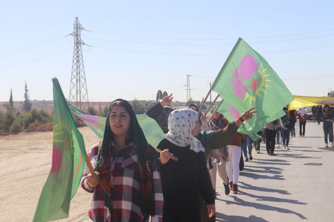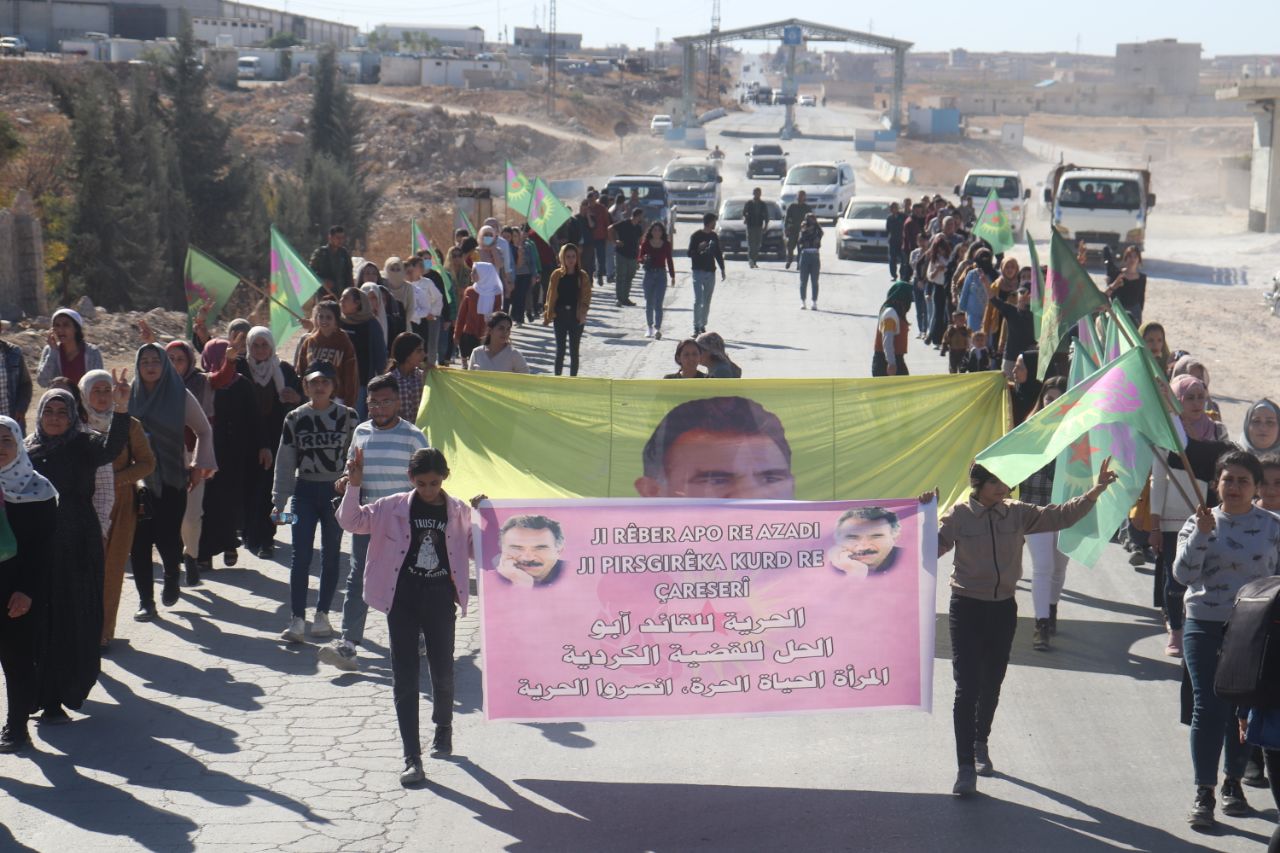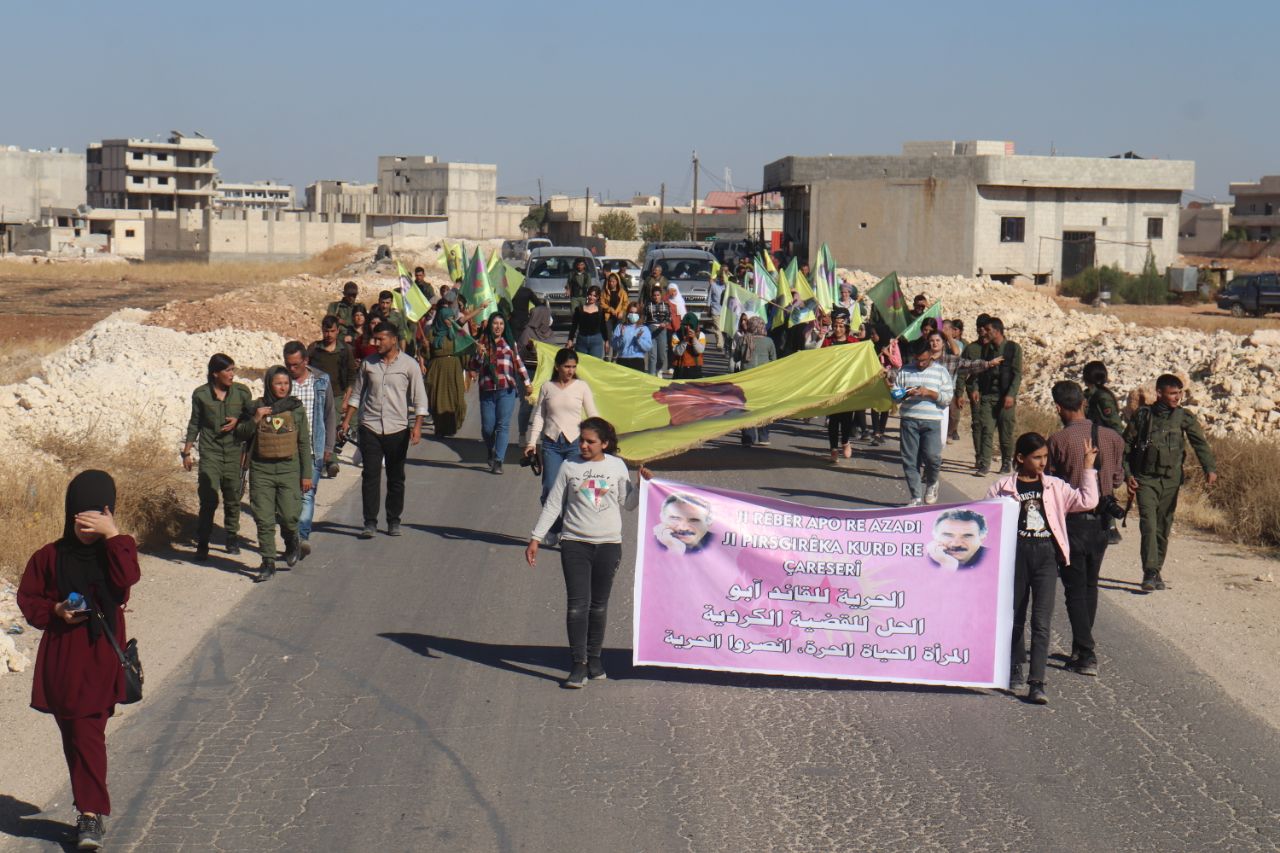 KOBANÊ – Îro Yekîtiya Jinên Ciwan a herêma Firatê, di çarçoveya hemleyê navnetewî “Ji Rêber Apo re Azadî, ji Pirsgirêka Kurd re Çareserî” meşekî ji bo azadiya fîzîkî ya Rêber Apo li dar xist. Meş jî bi dirûşmên “Jin Jiyan Azadî” û “Cenga azadiyê ser bixin” hate organîzekirin.