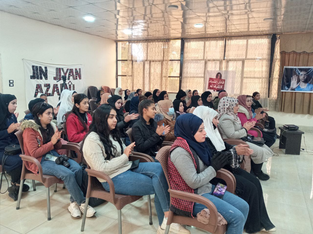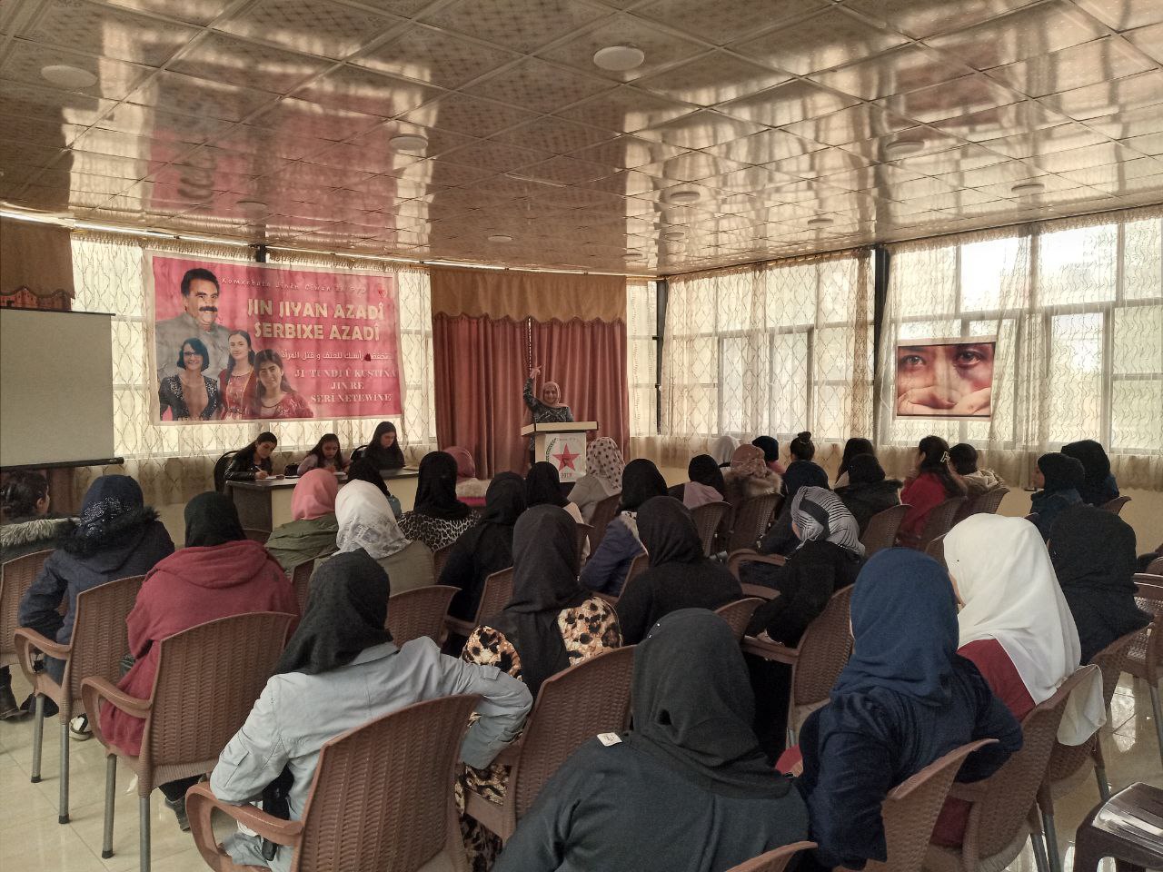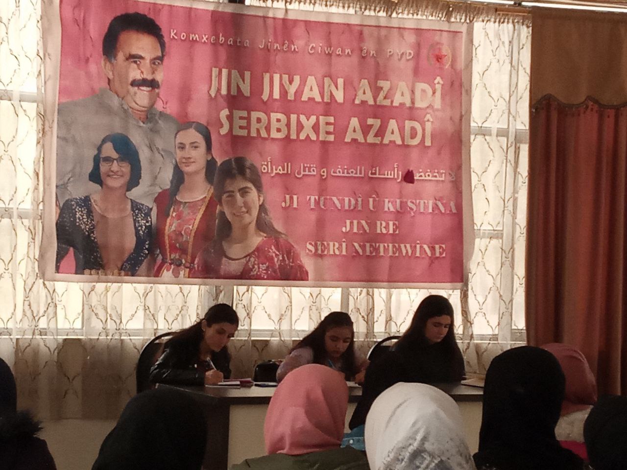 HESEKE – Berî kêlîyekî li bajarê Heseke Jinên Ciwan ên Partîya Yekîtiya Demokratîk (PYD) dest bi komxebatê xwe di asta herêma Cizîrê de bi siloganê “Ji tundî û kuştina jin re serî netetewîne” kirin. Di çarçoveya hemleyê “Jin, Jiyan, Azadî, Serbixe Azadî”, nêzî 40 jinên ciwan beşdarî komxebatê dibin li ku nîqaşên li ser tekoşîna li dijî şîdeta li ser jinan were meşandin. Komxebat bi axaftina Komîteya Jineolojî hat vekirin û nîqaş hat dest pê kirin. Komxebat li baxçeya rewşenbîran a Heseke tê li darxistin û berdewam dike.