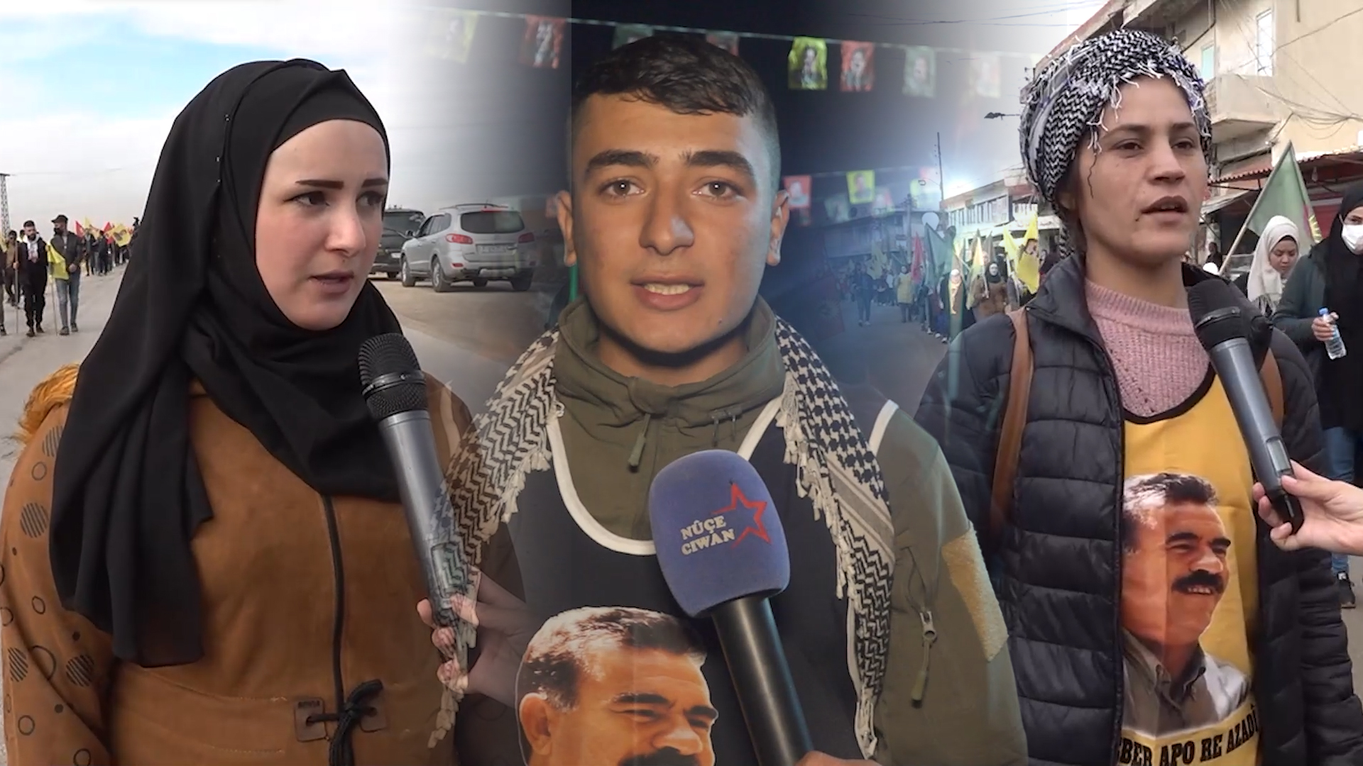 Navê min Femî ye, ez endamê Tevgera Ciwanên Şoreşger im. Me ev meş li dar xist bi taybet ji bo azadîya fîzîkî ya Rêber Apo û çareserî ji pirsgirêka kurd re. Em dixwazin vê rojê bikin roja azadîya fîzîkî ya Rêber Apo. Hemû ciwanên Bakûr û Rojhilatê Sûriyê destên xwe dan hev ji bo azadîya fîzîkî ya Rêber Apo. Em dixwazin Rêber Apo ji zindana derkeve û di dawî em dibêjin Bê Serok Jiyan Nabe, Bê Serok Jiyan Nabe, Bê Serok Jiyan Nabe.