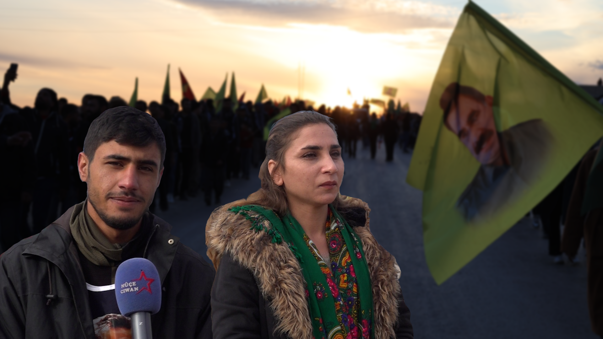 Navê min Jîn Îbrahîm e. Em hatin vê meşê di bin siloganê “Ji Rêber Apo re azadî, ji pirsgirêka Kurd re çareserî”. Ev meş ji bo Serokatî ye. Ev roja duyemîn ev di vê meşê de ne. Armancê me ji vê meşê azadîya fîzîkî ji bo Serokatî û ku ji pirsgirêka Kurd re çareserî were dîtin. Ev du roj ciwan ser piya ne û wê berdewam bikin heta ku pirsgirêkên me werin çareser kirin an em bigihêjin armanc û hedefekî.