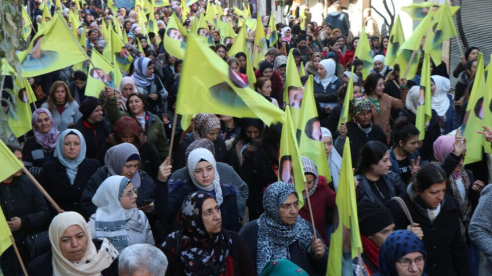HELEB – Meclisa Jinan a Meclisa malbatên Şehîdan a Helebê ji bo şermezarkirina tecrîda li ser Rêber APO, di pêngava cîhanê ya “Ji Abdullah Ocalan re azadî û ji pirsgirêka Kurd re çareseriya siyasî”, meşek li dar xist. Şêniyên taxên Şêmxeqsûd û Eşrefiye beşdarî meşê bûn. Destpêkê li pêşiya salona 8’ê Adarê ya civînan a li rojavayê taxa Şêxmeqsûdê kom bûn û ber bi Qada Şehîdan a li rojhilatê taxê ve meşiyan.