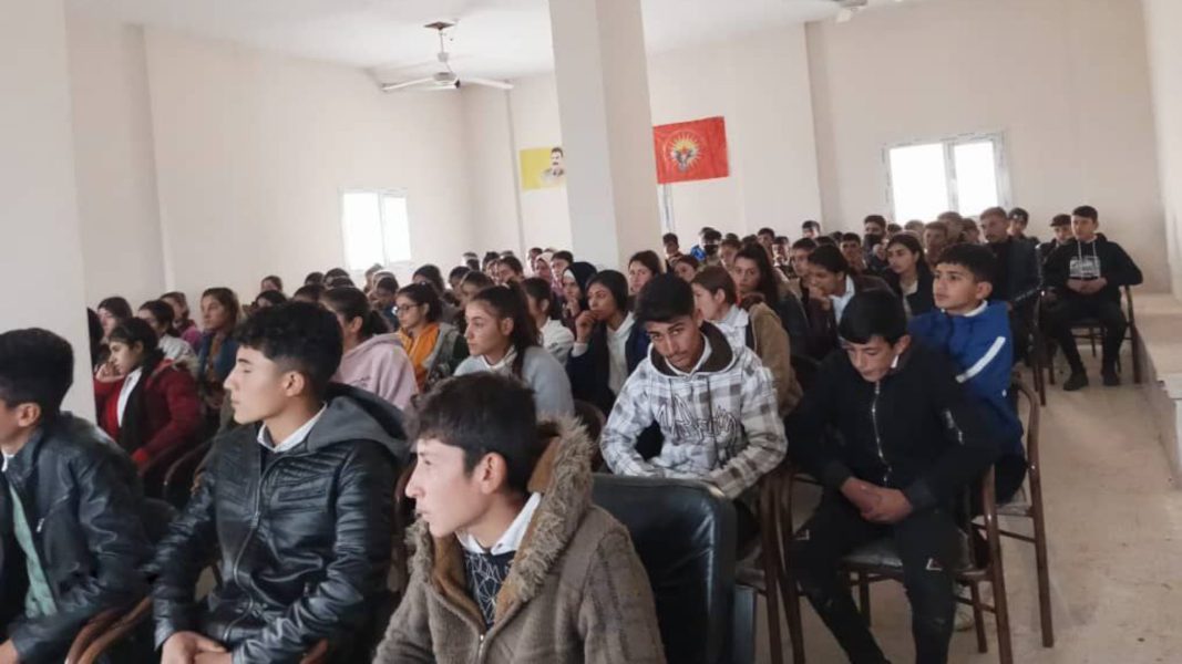 KOBANÊ – Li navçeya Qinê ya Kobanê Tevgera Ciwanên Şoreşger di çarçoveya hemleyê “Mala xwe, taxa xwe, axa xwe û welatê xwe biparêze” semînerek li ser Şerê Taybet da.