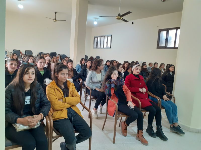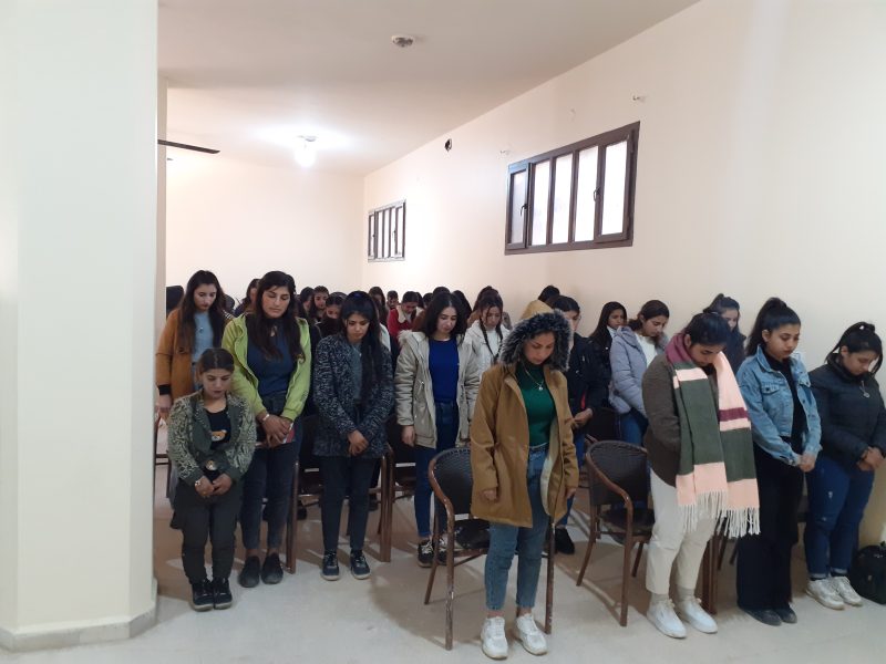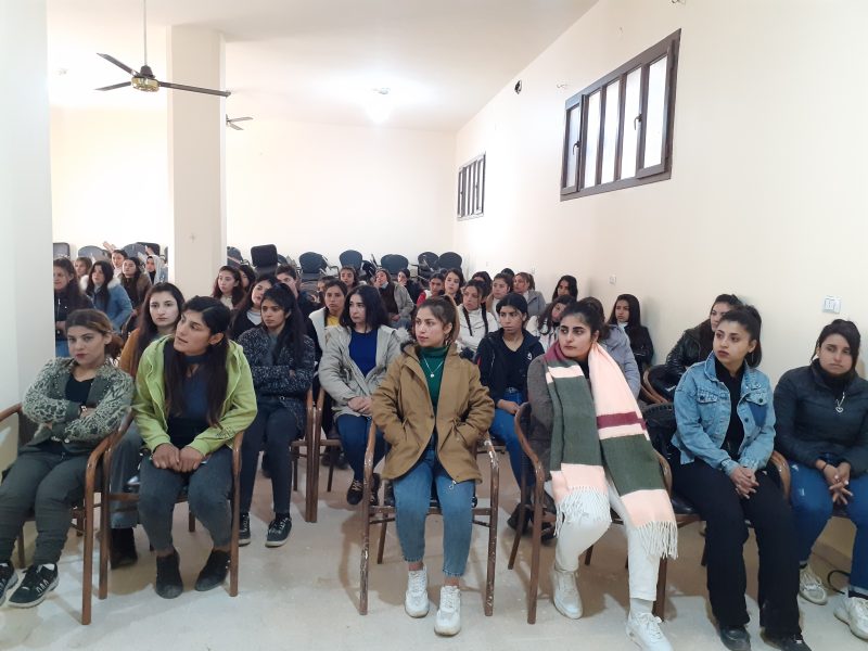 KOBANÊ – Îro bi dehan jinên ciwan ên Kobanê di çerçoveya pêngava “Ji Rêber APO azadî, jî pirsgirêka Kûrd re çareserî” li peymangeha Zanîngeha Kobanê kom bûn. Komxebat bi semînera li ser jiyan û têkoşîna Rêber APO û tecrîda li Îmraliyê destpê kir û komîsyon ji aliyê xwendekarên zanîngehê ve hate peşkeşkirin.
