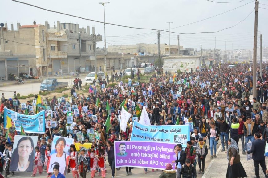 Kurd, Ereb, Suryan, jin, mêr, ciwan, zarok û kesên bi temen her yek bi zimanê xwe yê dayikê bi berzkirina dirûşma “Bê Serok Jiyan Nabe” herikîn çalakiyan.