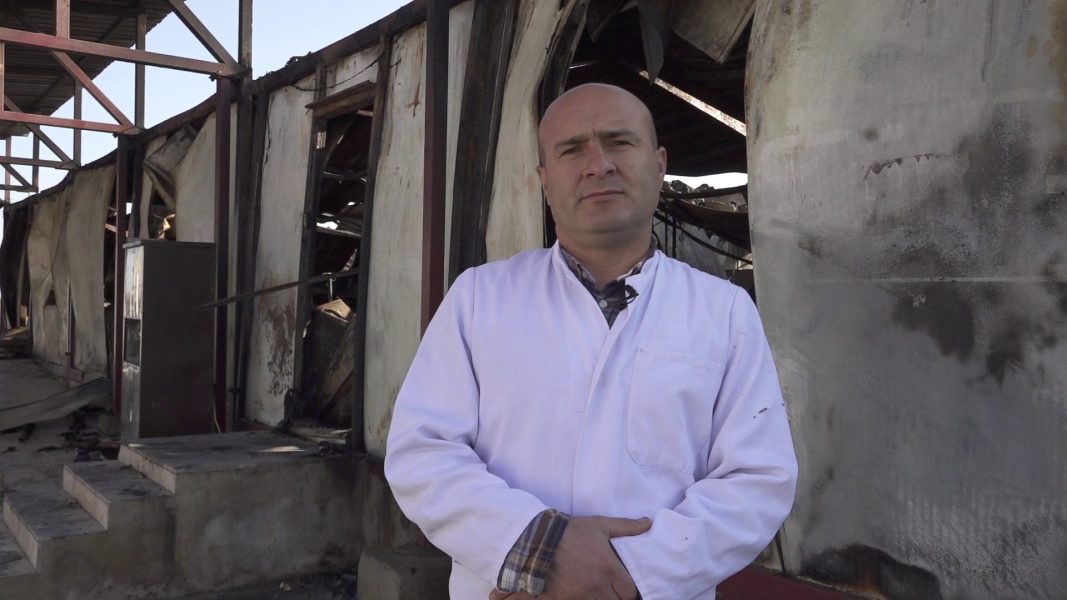“Klînîka Miştenur di 25’ê Kanûnê de sewaxiq lêketin, giştî şewitî, ji askerê Tirka ve. Tiştekê baş hebû em di wê wextê tê de ne hazir bûn. Klînîkê me mezine û tiştekê nemaye giştî şewitiye. Ez bi xwe di beşa Şekir dixebitim. Di rojanê 60-70 nexweşên me hene, herî zêde 3000 nexweşên me hene li vir derman dibin û em tehlîlan ji wan re çêdikin. Wê îhlê jî beşa nasahî heye, tehlîl heye, atfala heye. Merkezekê pir mihûm bû ji bo bajar. Rojanê me hebûn digihiştin 300 heta 500 nexweş kom dibûn. Îlaç ji vê derê distandin. Anha îro şewitiye, tiştek ser hevdû nemaye. Weke din dermanên me çûn, cîhaza tehlîlên me çûn. Di vê merhalê de rastî jî miletê me ketiye halekê tang de. Niha 300-500 kes îlacê xwe ji ku derê bistîne? Tiştek şûnê wî nemaye.