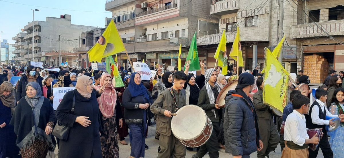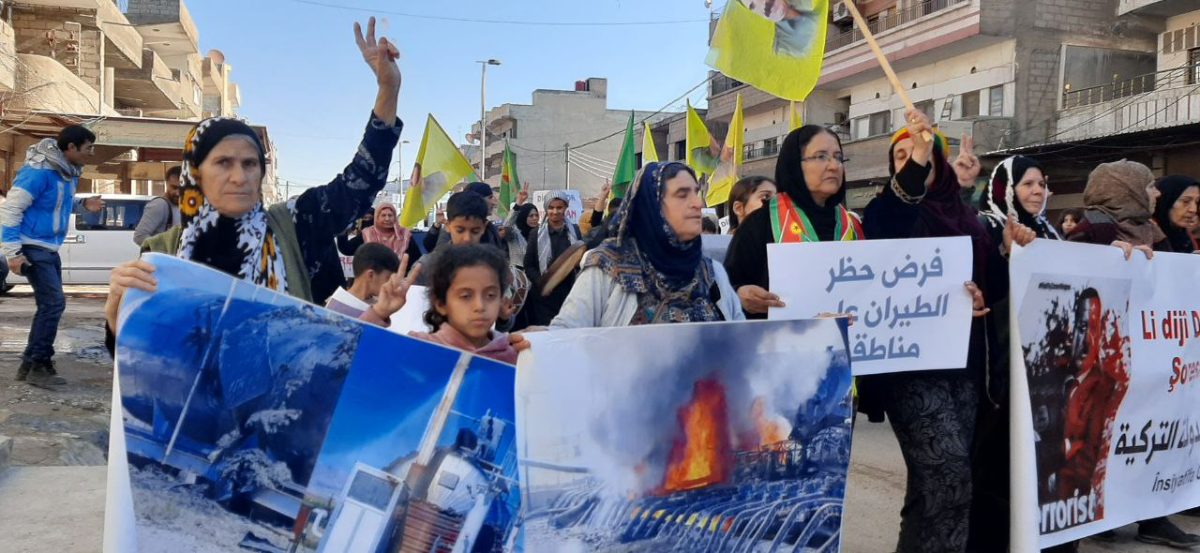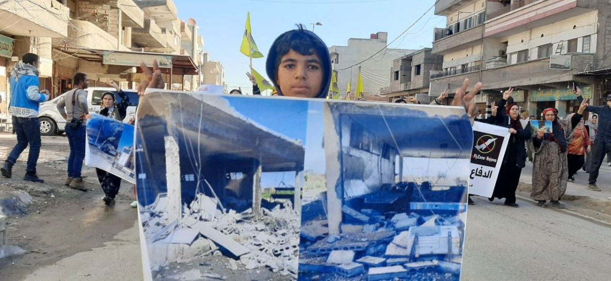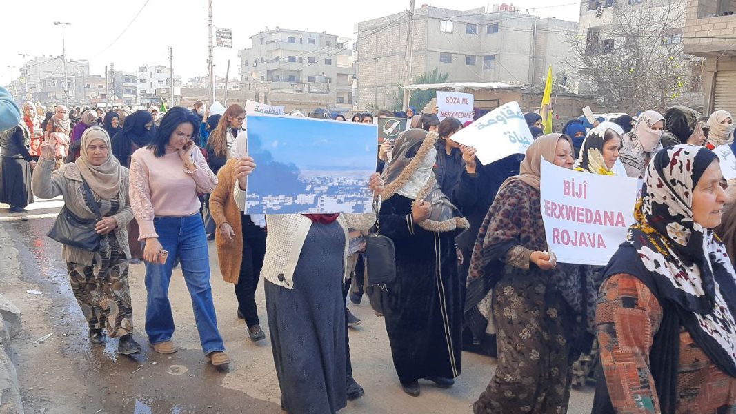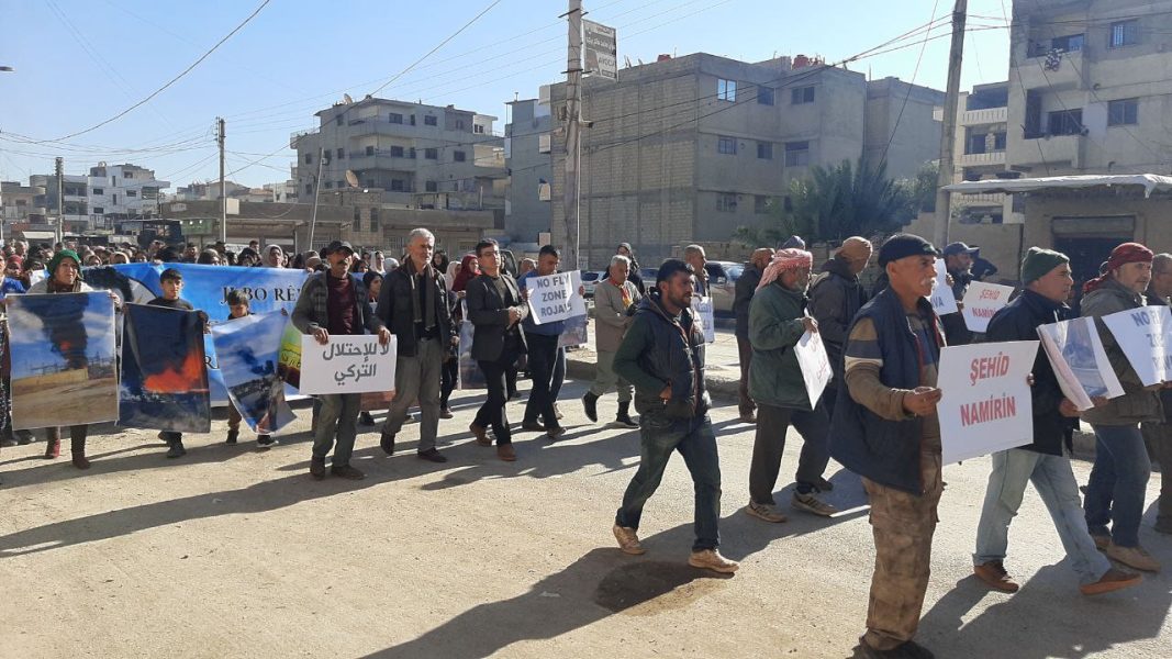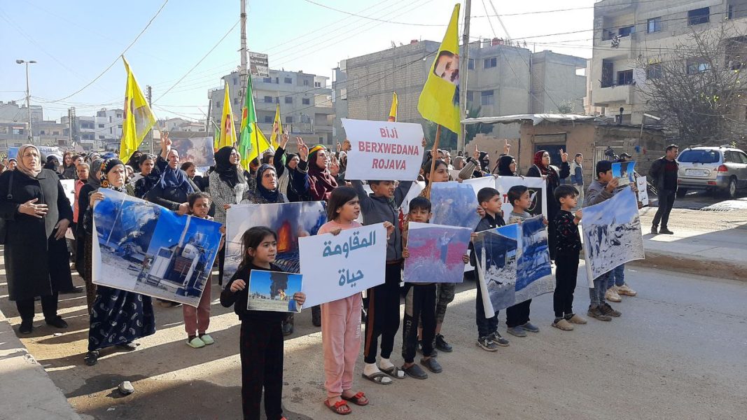 QAMIŞLO – Li bajarê Qamişlo di bin pêşengtiya Înîsiyatîfa Gel meşekî tê li darxistin li dijî êrîşên dawî yên dewleta Tirk a dagirker li ser Bakur û Rojhilatê Sûriyê, bi hedefkirina saziyên medenî, binesazî û noxteyên eskerî, ku tê de 9 welatî şehîd bûn.