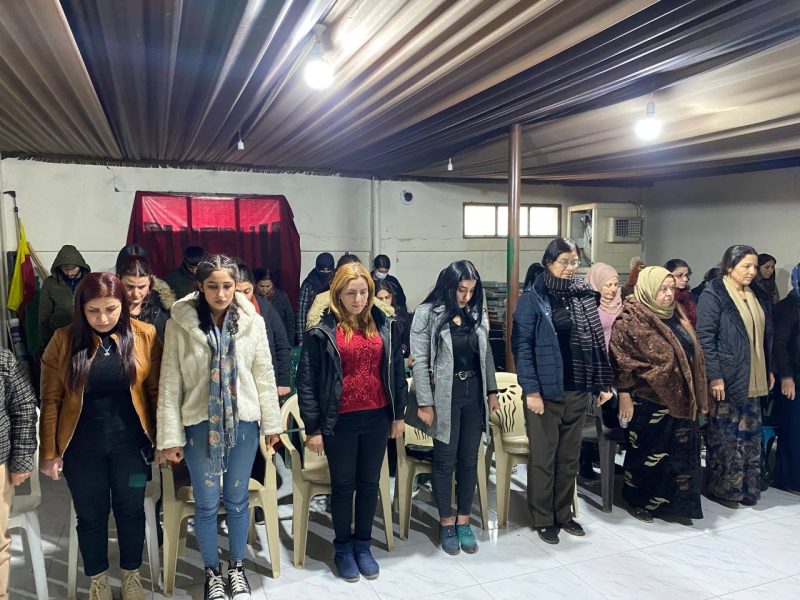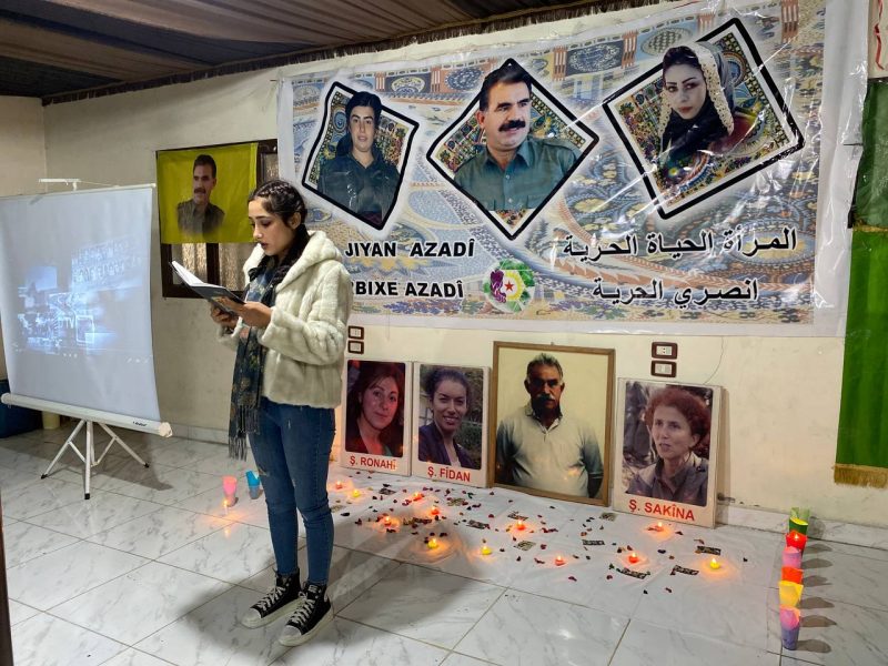 Bîranîn, saet 4 evarê, bi amadebûna nêzî 30 kes, bi deqayekî rêzgirtin li ser giyana tevahî şehîdên şoreşê dest pê kir. Piştî wê mûm hatin pêxistin û berdevkê Yekîtiya Jinên Ciwan a Dirbêsiyê li ser tekoşîna her 3 şehîd axivî. Piştî wê sînevîzyonekî li ser jiyana şehîd Sakîne Cansiz (Sara) hat temaşekirin.