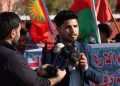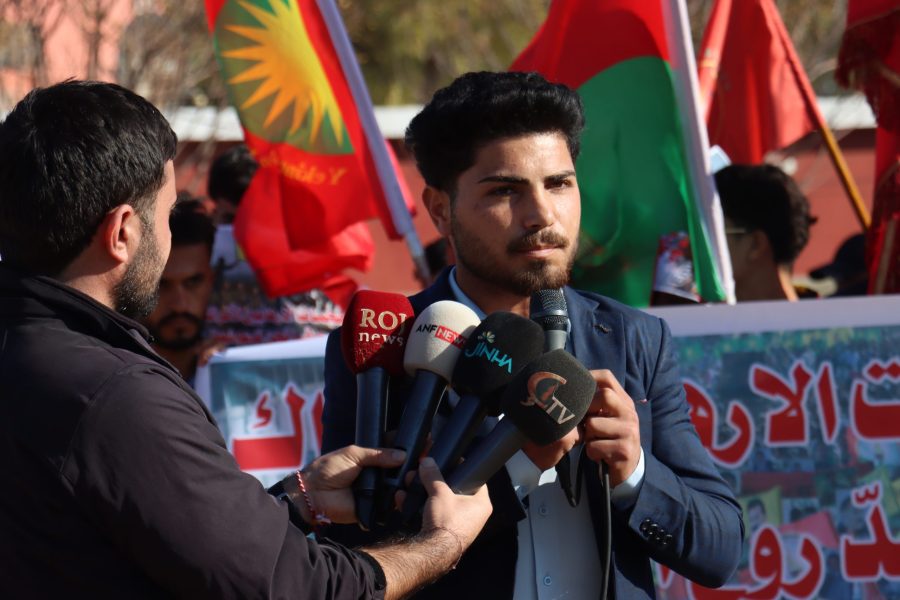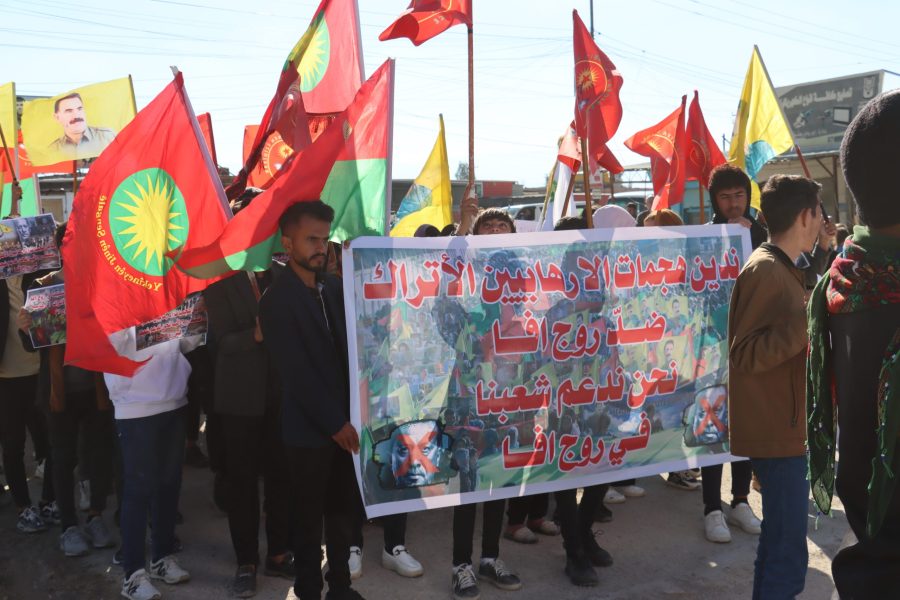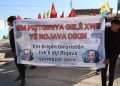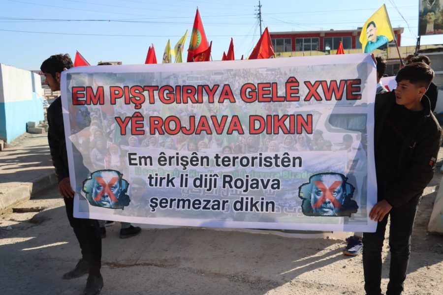 Di meşa bi pêşengiya Yekîtiya Ciwanên Êzidxanê de, posterên Rêber Ocalan, al û sembolên sazî û rêxistinên Şengalê hatin hildan. Her wiha pankarta, ‘Em êrişên terorîstî yên Tirk yên li dijî Rojava şermezar dikin, cenga azadiyê serbixin’ hatin rakirin.