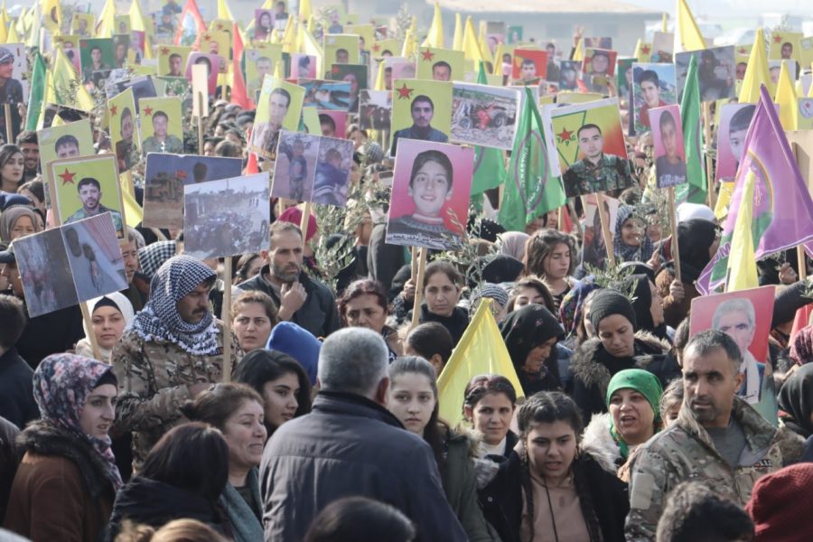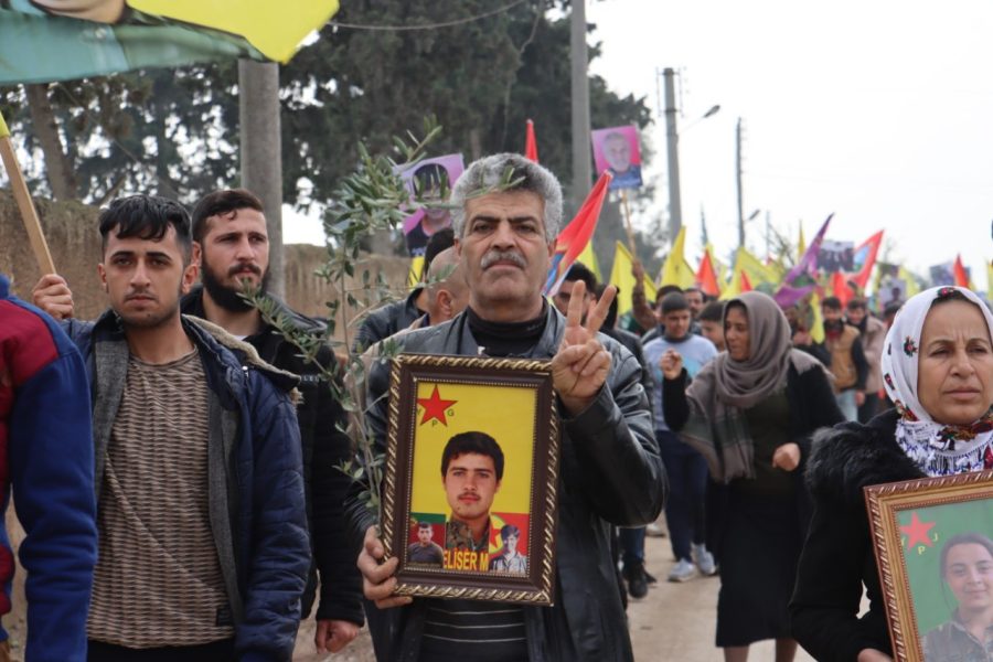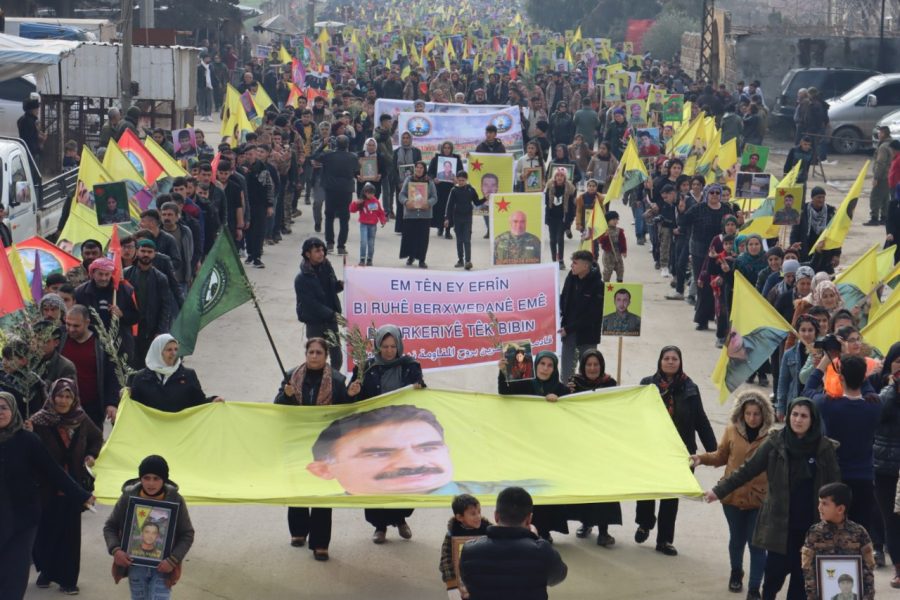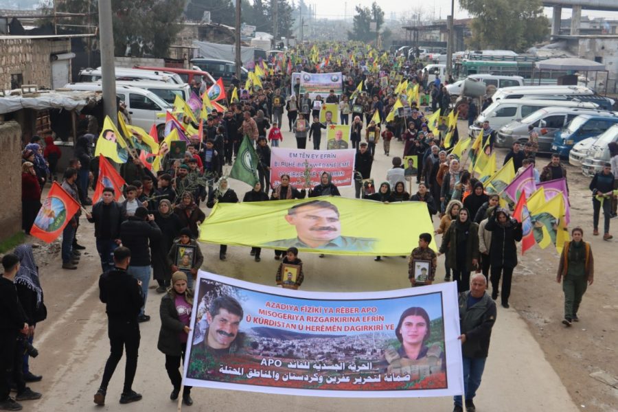 ŞEHBA – Îro li navçeya Fafînê ya Şehbayê ji bo salvegera destpêkirina êrîşên dagirkeriya Tirk li ser herêma Efrînê û xwedîderketina li “Berxwedana Serdemê” di bin dirûşmeya “Azadiya Fîzîkî Ya Rêber Apo Misogeriya Rizgarkirina Efrîn û Hemû Herêmên Dagirkirî Ye” bi hezaran gelê Efrînê derketin qadan û meşeke girseyî li dar xistin. Di 20’ê Çileya 2018’an de dagirkeriya dewleta tirk bi bêdengiya navdewletî û danîna peymanê bi Rûsiyayê re li ser hesabên kuştina gelê Sûriyê û bi taybet dagirkirina herêmên gelê kurd dest bi êrîşeke hewayî ya berfireh kir. Piştî piştî 58 rojên berxwedanê Efrînê hat dagir kirin.