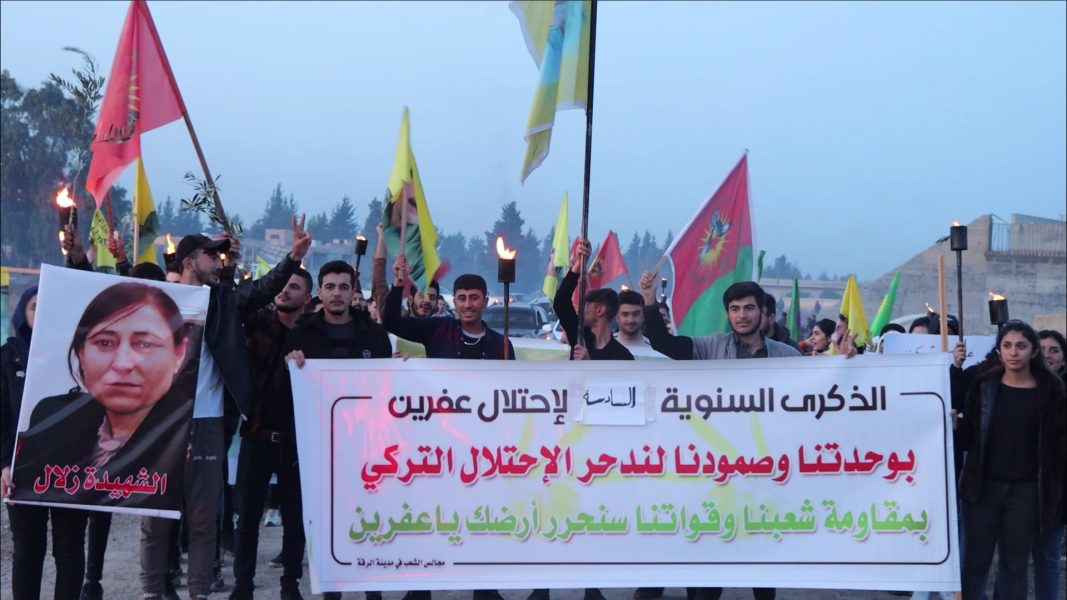 REQA – Bi boneya salvegera şeşemîn ê dagirkirina bajarê Efrînê ji aliyê dewleta Tirk, Tevgera Ciwanên Şoreşger û Yekîtiya Jinên Ciwan ên Reqayê îro danê êvarê meşekî meşaleyî li dar xistin.