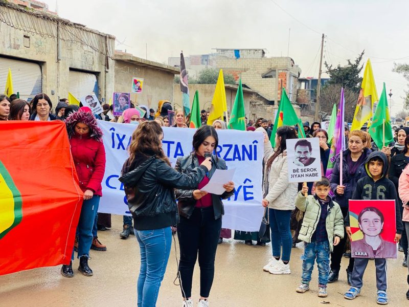 DİRBESİYÊ – Îro Yekîtiya Jinên Ciwan û gelên bajarê Dirbêsiyê û bajarokê wê bi meşekê li şermezarkirina şehîd xistina Heval Zelal Zagros ji destê dewleta Tirk a faşist, qirker û hevkarên wî ixenetkar PDK liderxistin. Meş ji camiya Hec Siltan despêkir heta navenda Kongra Star berdewam kir. Di meş de bê navber siloganên Bimre Îxanet! Bimre Dagirker! Bê Serok Jiyan Nabe hat qirin.