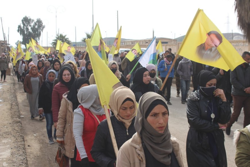 DÊRAZOR – Li kantona Dêrazorê Tevgera Ciwanên Şoreşger a Sûriyeyê û Yekitiya Jinên Ciwan ji pêşiya Çerxerêya Şehîdan a bajarokê Sewa meşiyan. Bi sedan şênî tev li meşa ciwanan bû.