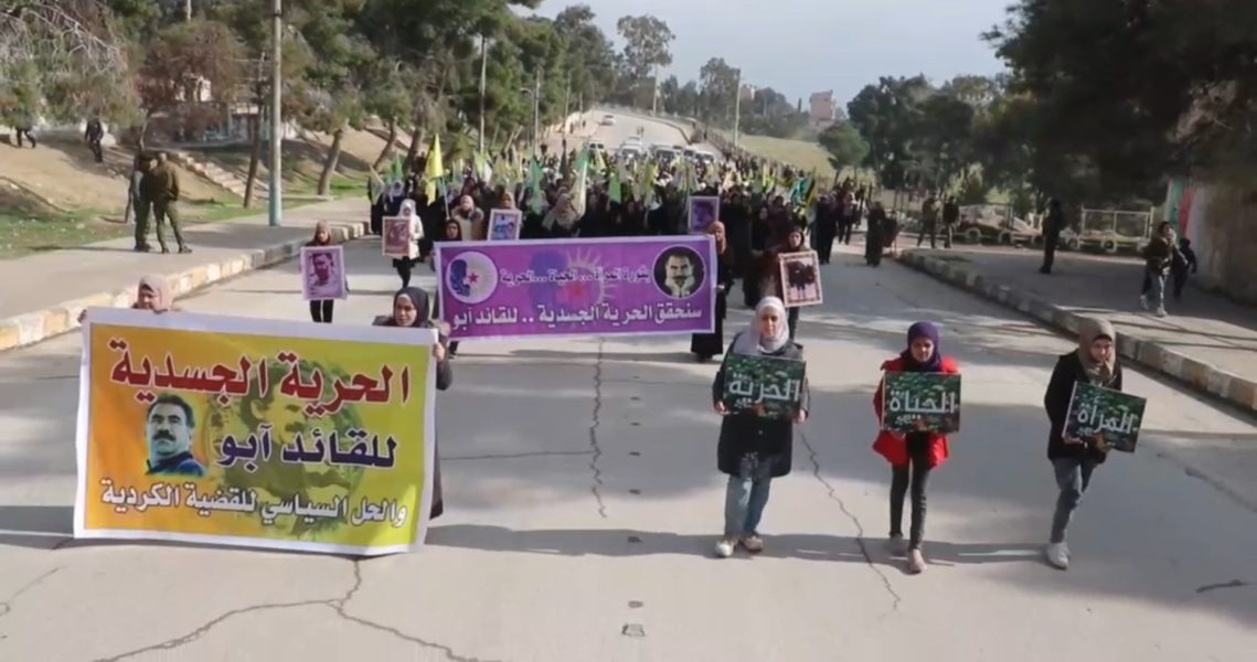 TEBQA – Yekîtiya Jinên Ciwan a bajarê Tebqayê bi dirûşmeya “Ji Rêber Apo re azadî, ji pirsgirêka kurd re çareserî” ji bo şikandina tecrîdê û daxwaza azadiya fîzîkî ya Rêber Apo, bi tevlîbûna gel meşekî girseyî li dar xist. Saziyên sivîl û leşkerî, partiyên siyasî, tevgerên ciwanan û tevgerên jinan beşdarî çalakî bûn.