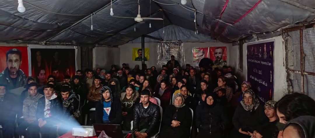 Calakiya jinên ciwan bi amadebûna nêzî 60 ciwan û şênî li Kampa Serdem a koçberên Efrînê li Şehba hat li darxistin. Besdarvanên çalakiyê di şexse her du cangoriyên azadiyê de ji bo tevahî sehîdên soresê deqayekî rêzgirtin rawestiyan. Gel bi baldariyek mezin dimenê her du fedayîyan temase kir. Çalakî bi sloganên “Seh Namirin Be Serok Jiyan Nabe Jin Jiyan Azadi hate avetin.