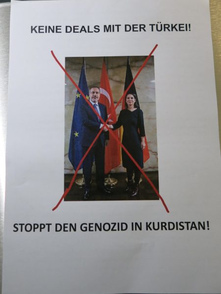 Di heman demê de çiqas xweş be jî, YE her tim behsa nirxên bingehîn ên demokratîk dike, hevkarê wê Elmanya bi pereyên xwe qirkirina Kurdan û kêmneteweyên din dike. Li Rojava li dijî binesaziya wan komkujî heye. Binesaziyên sivîl ên wekî dibistan, kreş, santralên enerjiyê, girtîgeh û saziyên din ji aliyê Tirkiyeyê ve bi awayekî zêde û bênavber tên bombebarankirin.